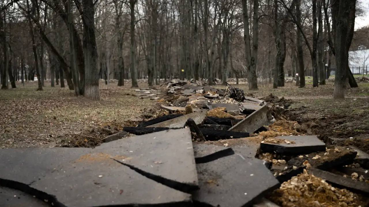 Начались работы по благоустройству Центрального парка культуры и отдыха. Подрядная организация приступила к демонтажу пешеходных дорожек и малых архитектурных форм.