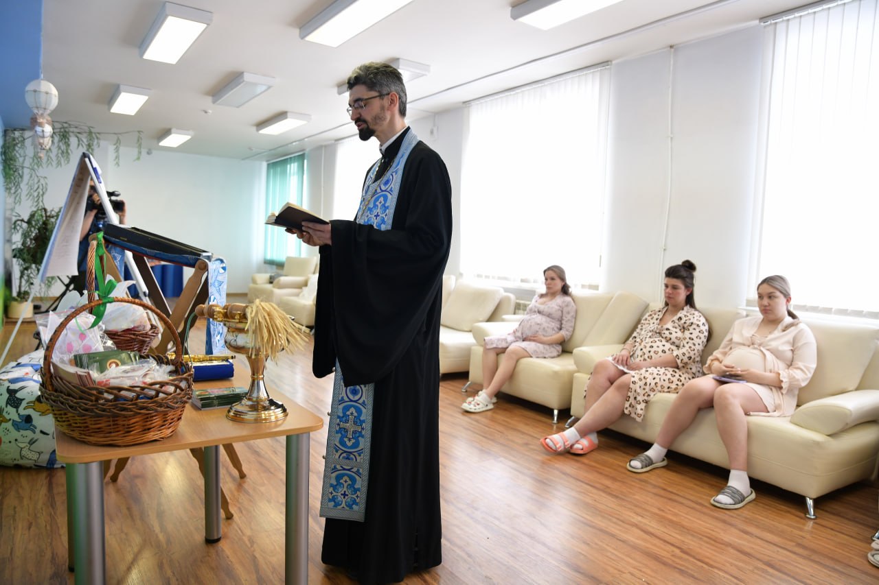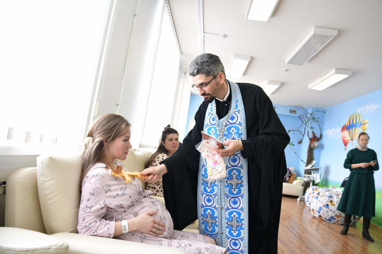 Праздник неразрывно связан с православной традицией, и поэтому настоятель Пантелеимоновского храма отец Артемий Базатин лично приехал в женскую консультацию и роддом, чтобы рассказать о духовном смысле праздника, благословить будущих мам и совершить молебен.