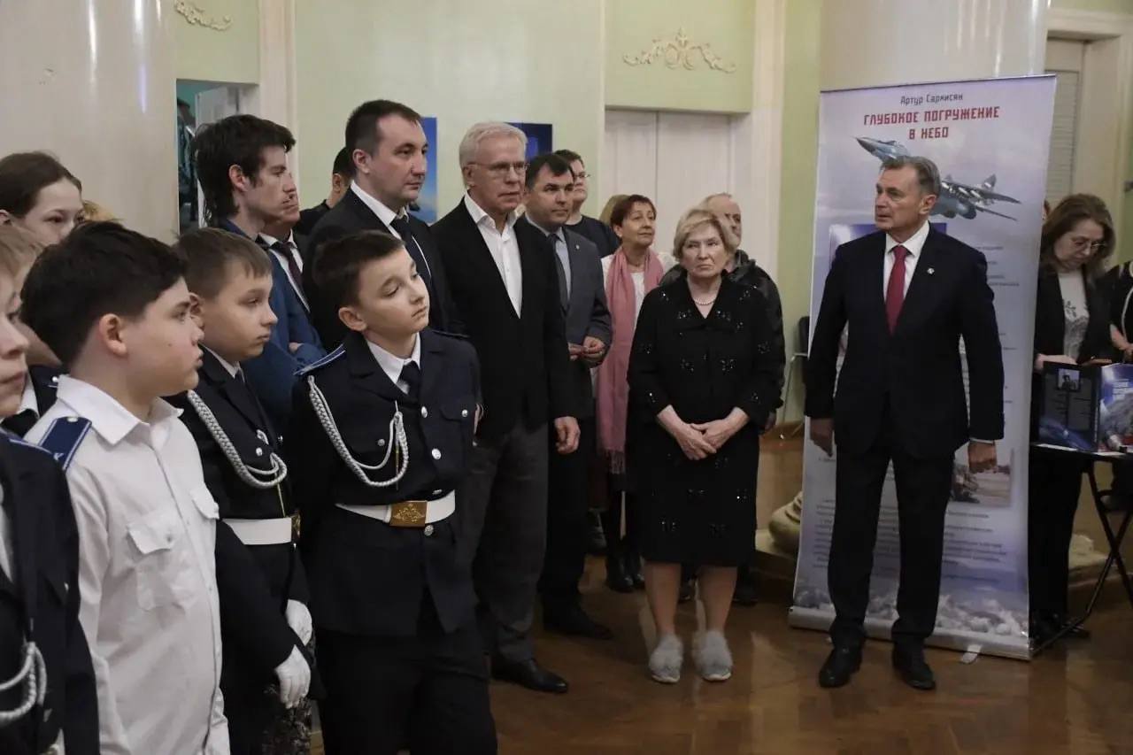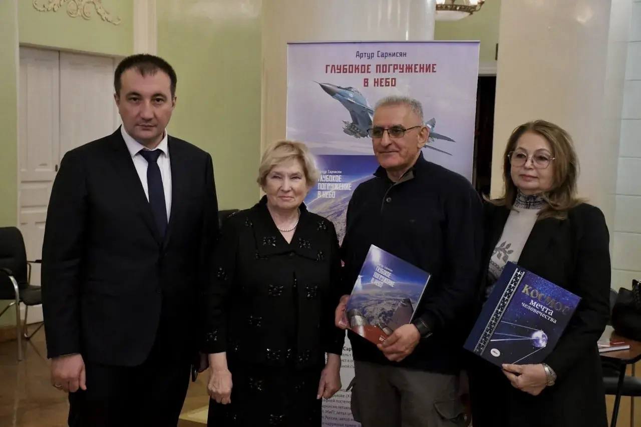 Также сегодня в фойе ДК прошла выставка летчика-истребителя первого класса, авиационного фотографа и видеооператора воздушных съемок Артура Саркисяна. На выставке он представил свою книгу «Глубокое погружение в небо», где разместил более 300 фотографий.