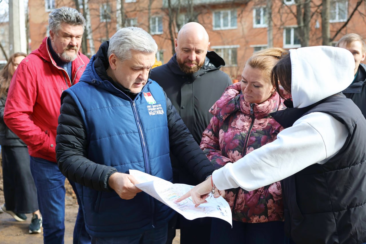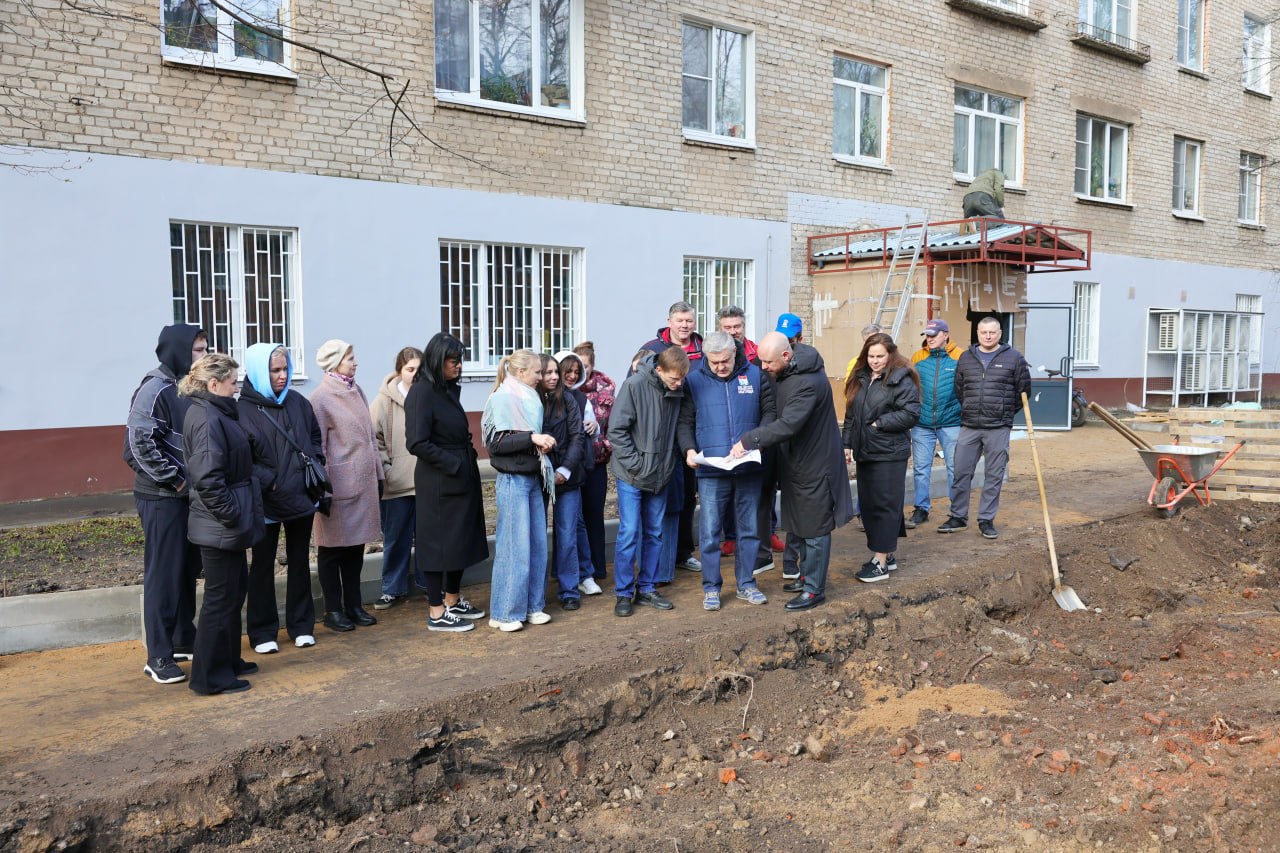 Заместитель главы городского округа Мытищи Иван Яськив совместно с председателем Совета депутатов Андреем Гореликовым проинспектировал ход работ по комплексному благоустройству дворовой территории у домов №№ 9, 11 и первого корпуса у дома № 9 по улице Мира.