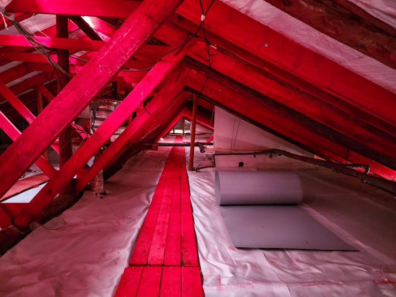 В трёхэтажном доме в микрорайоне Львовский заменили стропильную систему, отремонтировали и утеплили чердак. По периметру кровли смонтировали продухи – вентиляционные отверстия, необходимые для циркуляции воздуха под кровельным покрытием. Это поможет препятствовать образованию наледи на доме.