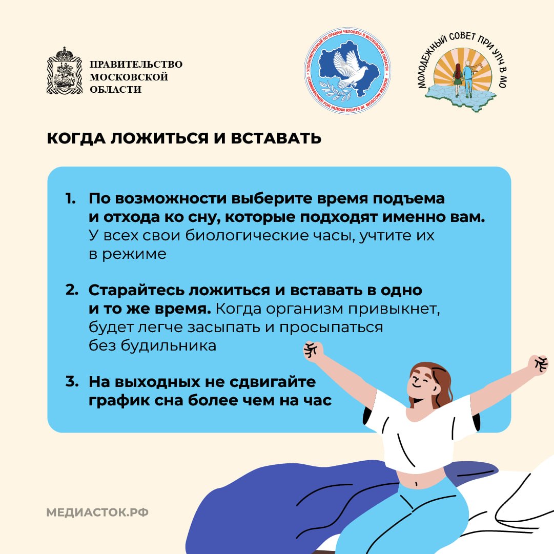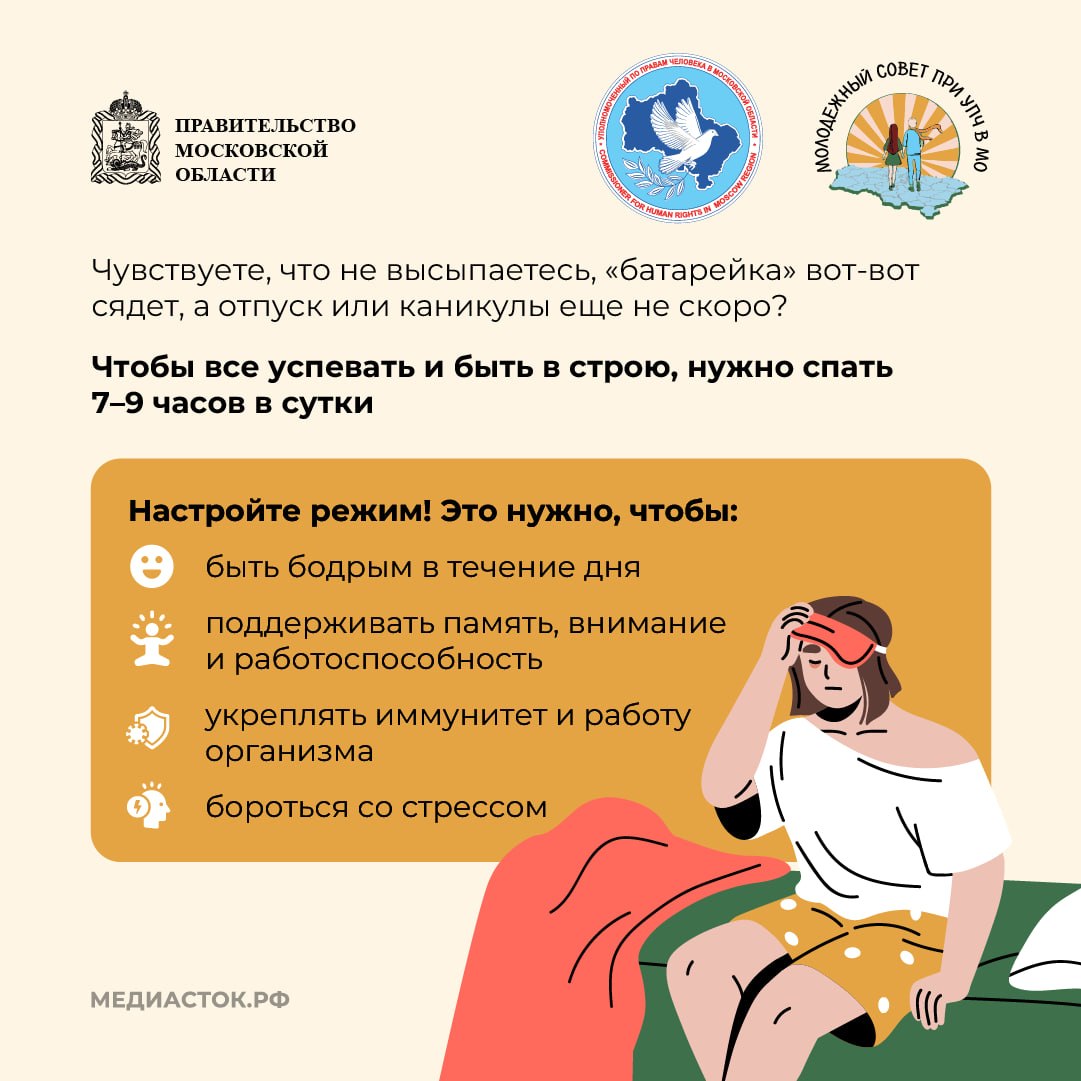 Чтобы силы не кончались, их нужно вовремя восстанавливать. В карточках – о том, как наладить режим отдыха и сделать сон качественным.