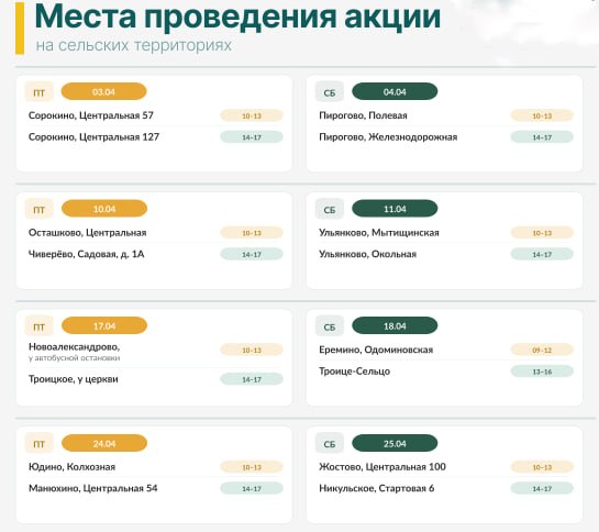Информация о местах проведения акции в мае буде опубликована позже.