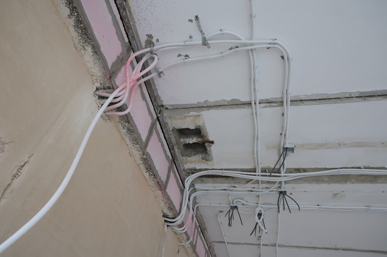 В здании уже завершены демонтажные работы, проведена частичная перепланировка помещений: увеличены игровые комнаты, организованы раздельные санузлы, улучшена эргономика помещений, возведены внутренние перегородки, установлены тёплые полы в игровых комнатах первого этажа. Идёт штукатурка стен, укладка электропроводки и разводка труб отопления. Вскоре начнётся установка автономного теплового узла для самостоятельной регулировки температурного режима.