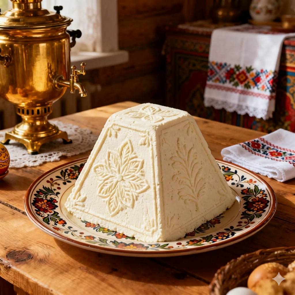 Взять самаго свежаго творога, протереть его сквозь сито и на 9 фунтов положить 8 свежихъ яицъ, 2 бутылки сливокъ, 1 фун. сливочного масла, сахара, соли.