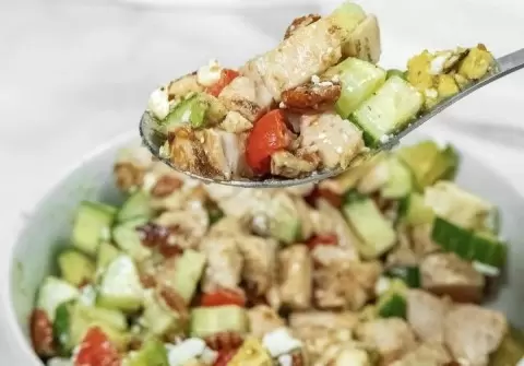 Недавний эксперимент с простым салатом, состоящим из огурца, помидора, зелени и отварной курицы, показал, как каждый тип заправки влияет на конечный результат: