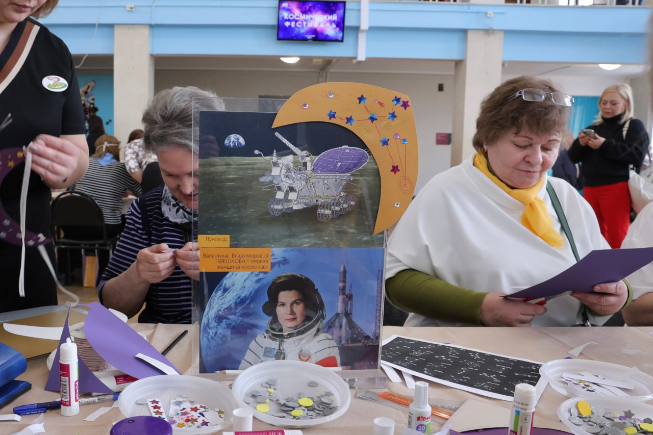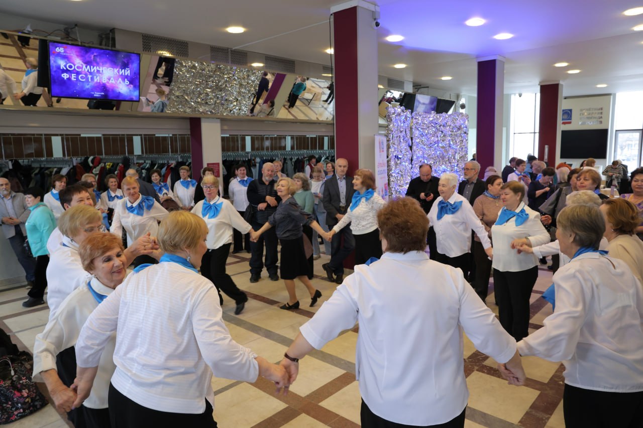 Сегодня в ЦДК им. М.И. Калинина прошел IV Космический фестиваль, приуроченный к празднованию Недели космоса. Мероприятие объединило более 360 участников клубов «Активное долголетие» из девяти городов Подмосковья: Королёва, Лосино-Петровска, Электросталя, Железнодорожного, Павловского Посада, Реутова, Щёлково, Клина, Сергиева Посада.