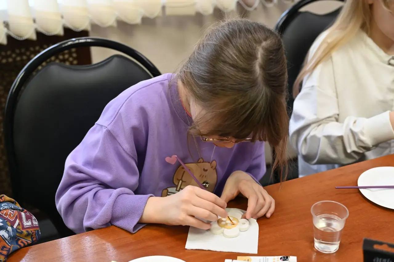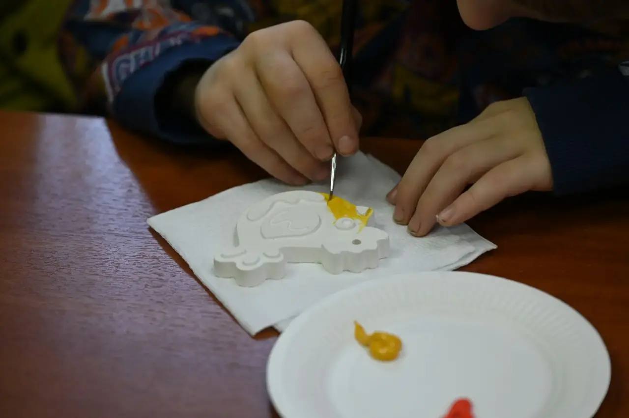 Ребята под руководством основательницы творческой мастерской «Пиония» Юлии Трубеевой расписывали гипсовые пасхальные украшения. Каждый старался вложить в свою работу тепло и любовь, чтобы потом отправить папе на фронт маленький символ веры в добро и напоминание о доме. Дети также подготовили открытки с тёплыми словами «Папа, ждём».
