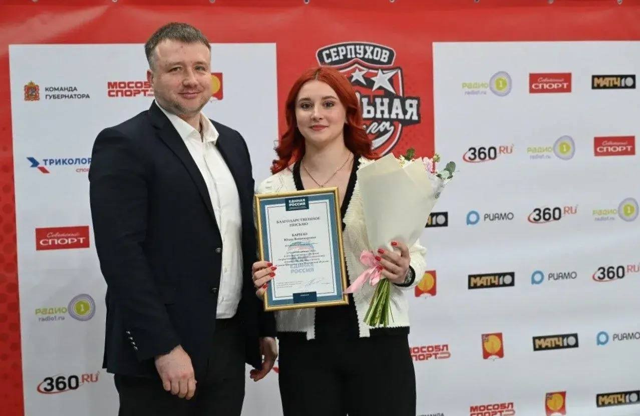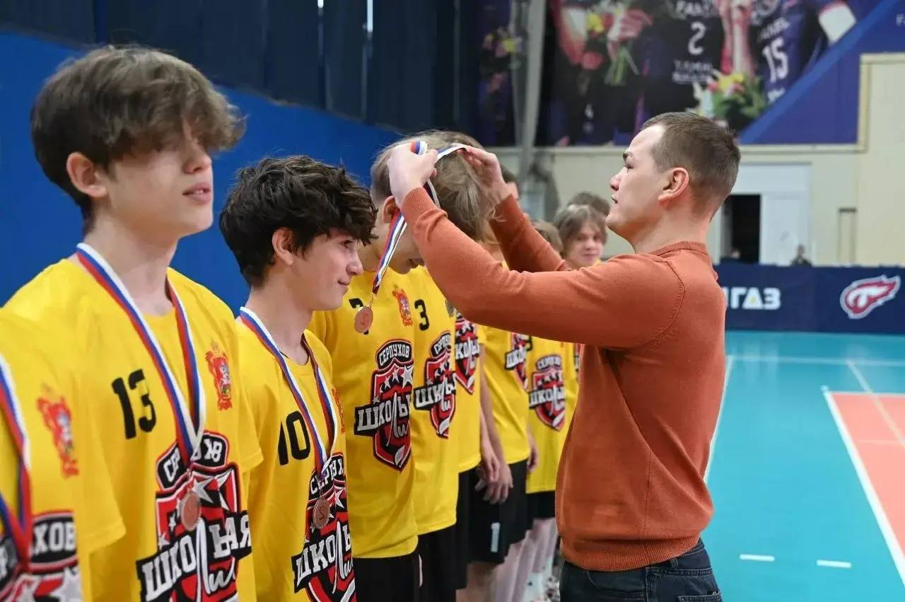 Глава городского округа Серпухов Алексей Шимко вместе с заслуженным мастером спорта Фёдором Чудиновым и российским волейболистом Алексеем Ковальчуком поздравили команды спортсменов и их тренеров.