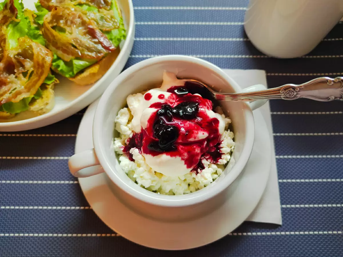Кулинары уверены, что творог – идеальный выбор для завтрака. Он богат кальцием и белком, а углеводов нет вовсе. Да и времени на его подготовку тратится минимум. С добавлением домашнего варенья и сметаны блюдо приобретает желаемую сладость и нежность.