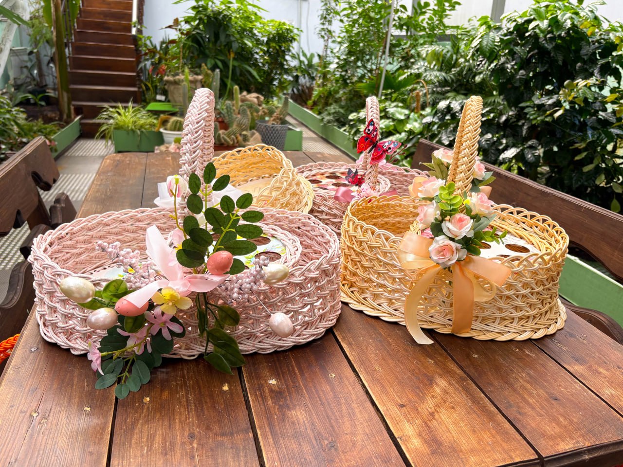 Совсем недавно участницы закончили очередной творческий проект – сплели пасхальные корзины из ротанга.