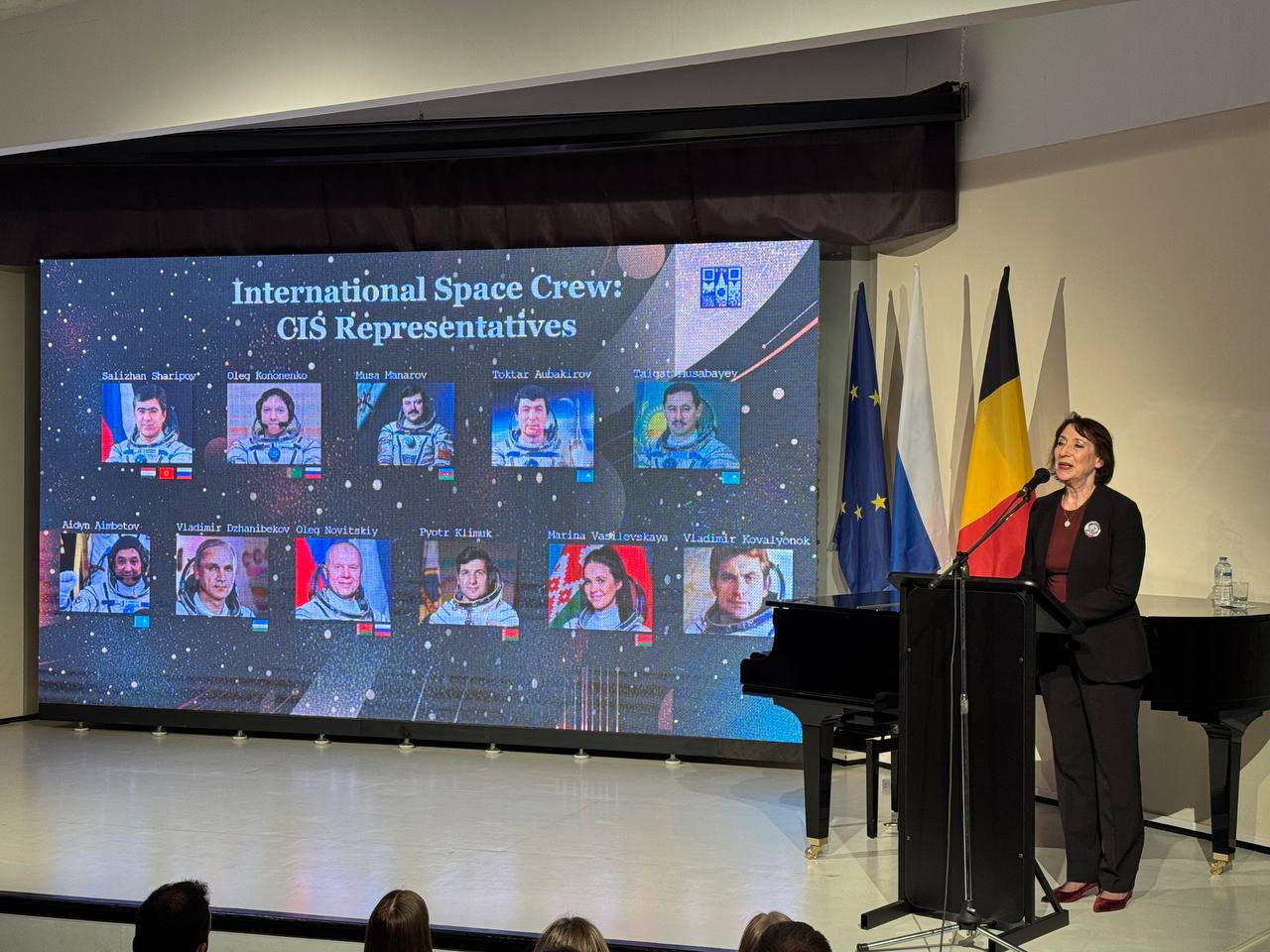 Кульминацией программы стали видео-приветствия от космонавтов Ю.В.Лончакова (Россия), А.И.Борисенко (Россия), С.Н.Рязанского (Россия), И.Н.Бучи (Белоруссия), С.Ш.Шарипова (Киргизия, Таджикистан, Россия), А.А.Аимбетова (Казахстан), а также торжественное открытие бюста Ю.А.Гагарина на территории Российского центра науки и культуры в Брюсселе.