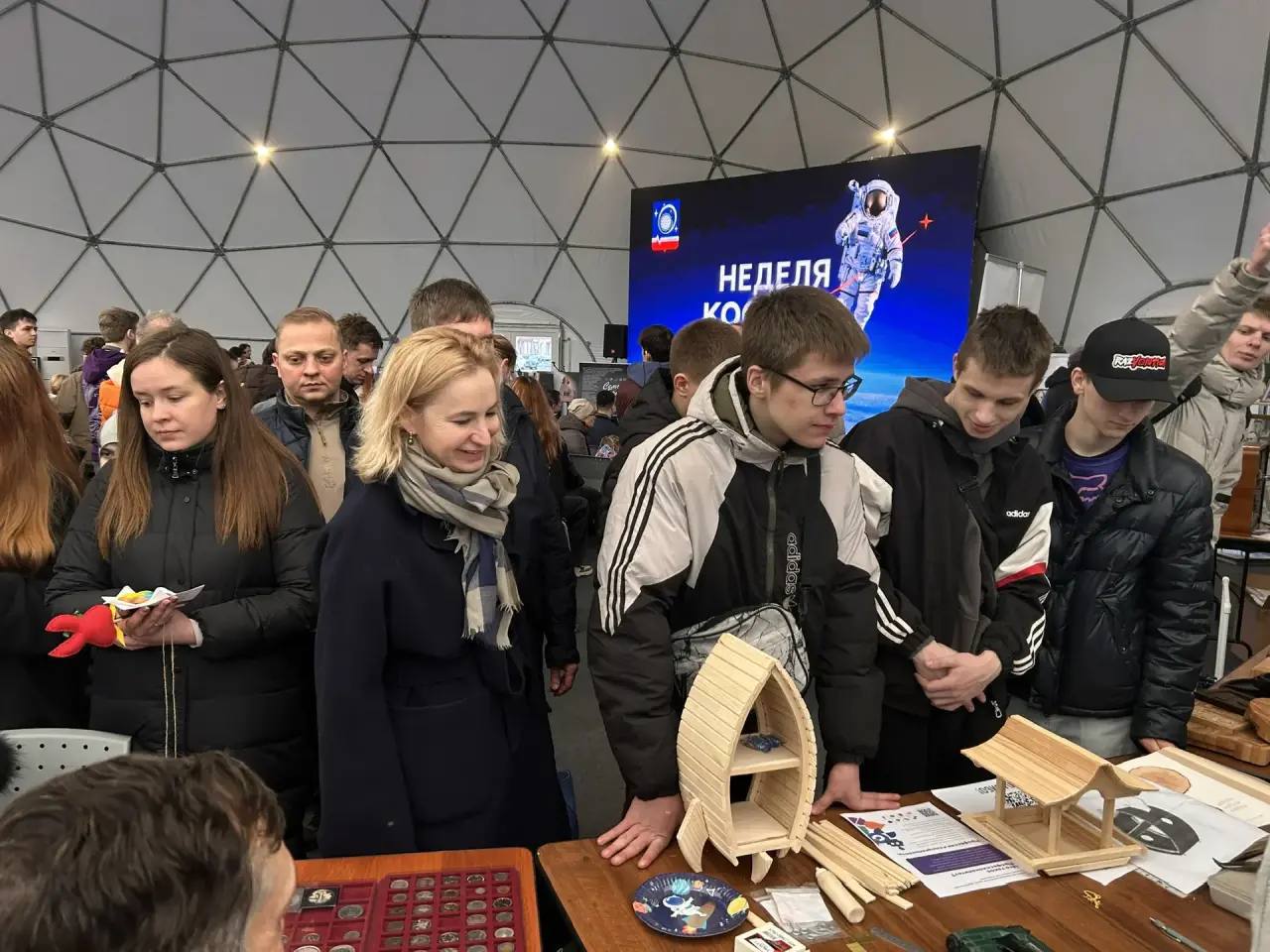 Почетным гостем мероприятия стала министр образования Московской области Ингрид Пильдес, которая посетила космический шатер и пообщалась с молодежью.