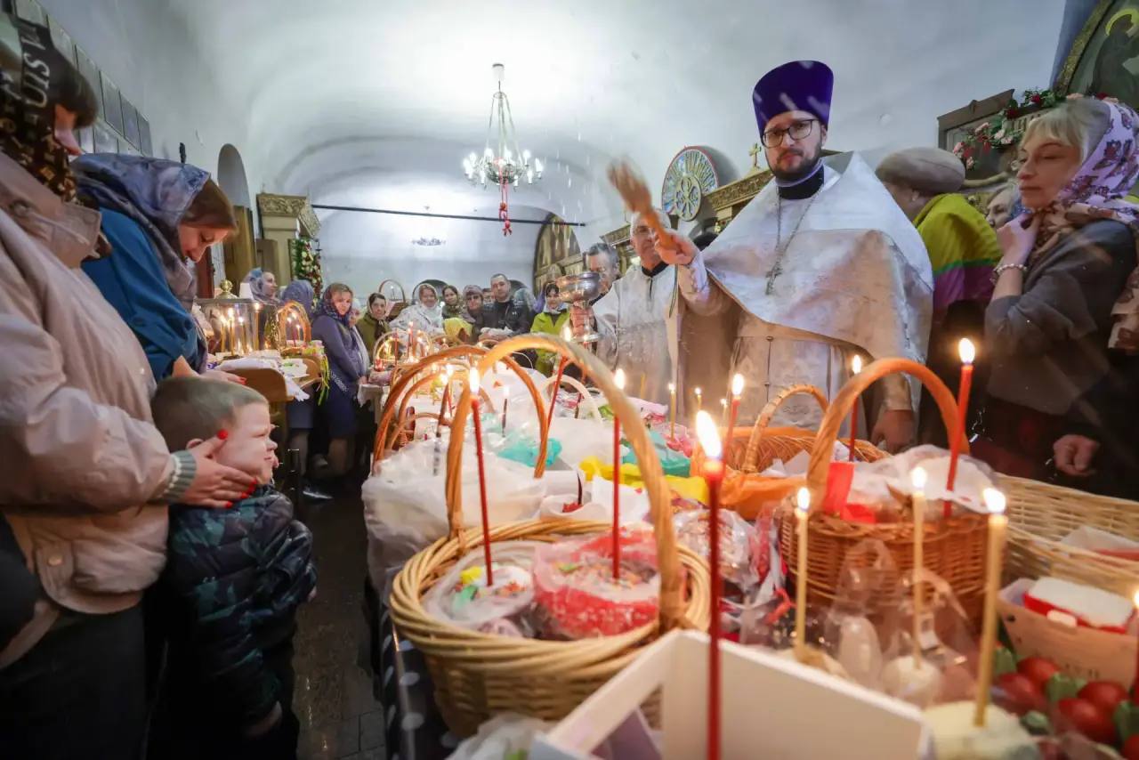 Освящение пасхальных приношений в Спасском храме продлится в течение всего дня, предваряя главную ночную службу.