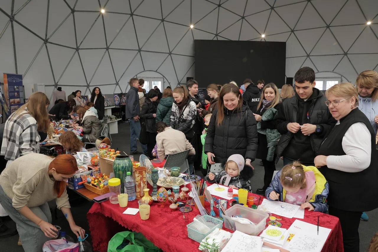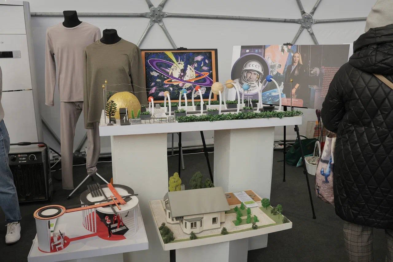 Затем на Центральной площади гости посетили Космо-шатёр - одну из самых ярких площадок Недели космоса. Здесь представлены уникальные экспонаты музейной выставки Техникума имени С.П. Королёва, личные вещи и снаряжение космонавтов, а также современные интерактивные площадки: гонки дронов, авиасимуляторы, VR-зоны и мастер-классы по пилотированию.