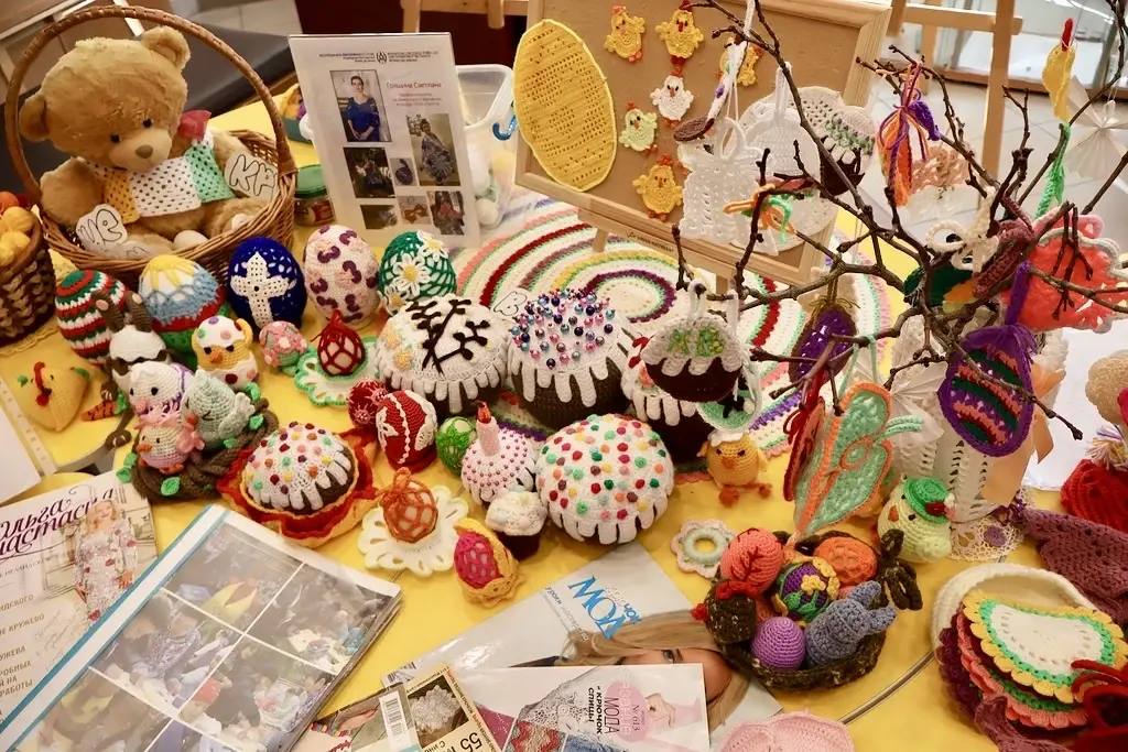Руководитель студии «Вяжущие светлячки» Светлана Гришина научила участников вязать ярких цыплят крючком к Пасхе.