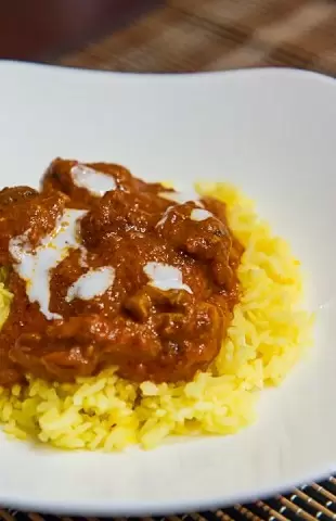 Баттер чикен можно подавать с ароматным рисом, украсив кинзой и йогуртом. Весомое блюдо, ставшее классикой, отменный выбор для угощения гостей или семейного ужина.