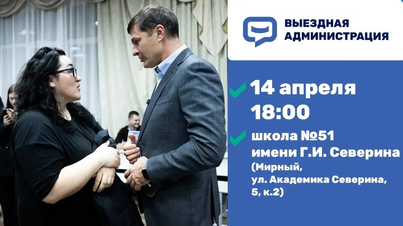 Глава г.о. Люберцы Владимир Волков проведет традиционную встречу с жителями в формате выездной администрации 14 апреля в школе №51 имени Г.И. Северина (Мирный, ул. Академика Северина, 5, к.2).