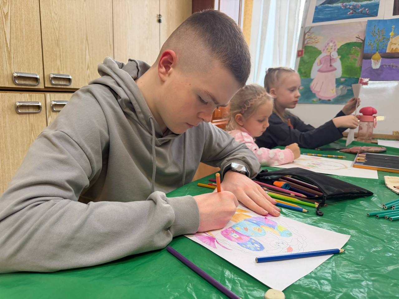 Перед тем, как взять в руки карандаши, юные художники обсудили историю возникновения Пасхи и важность сохранения народных традиций.