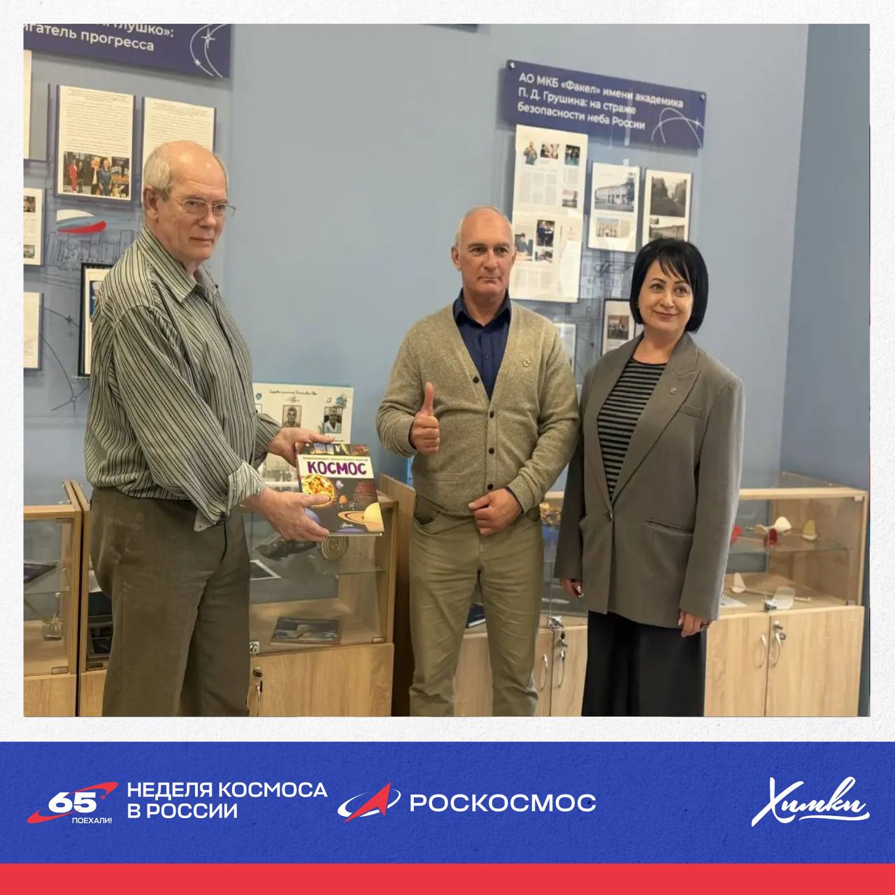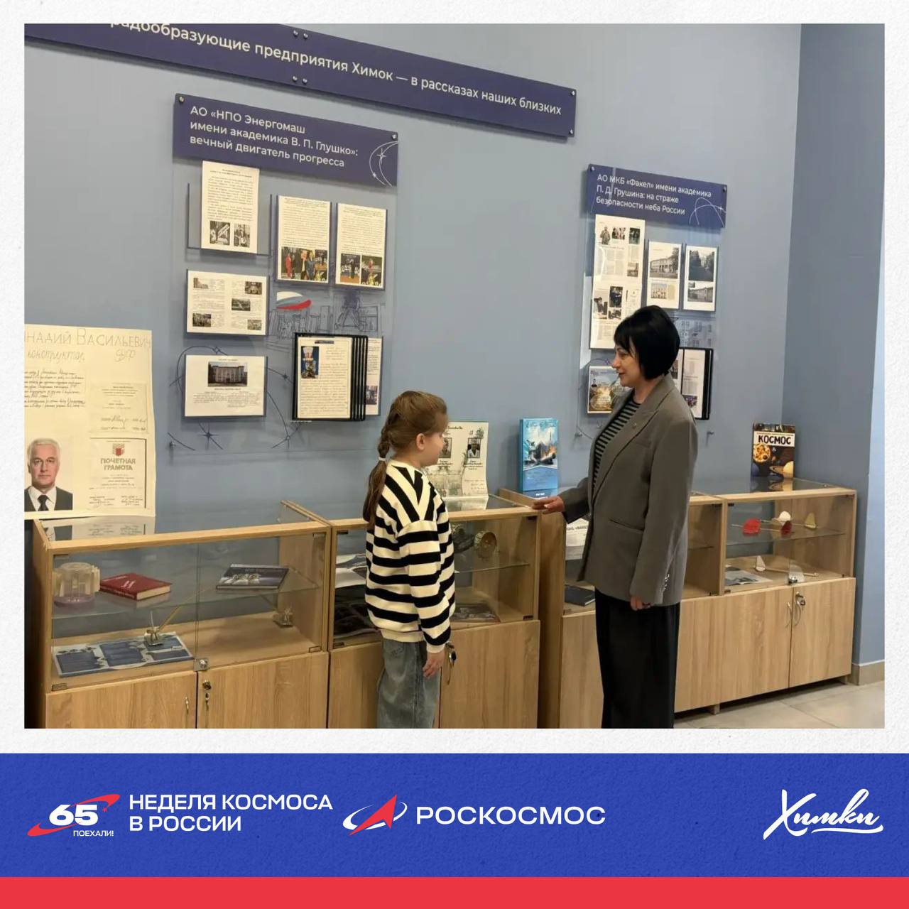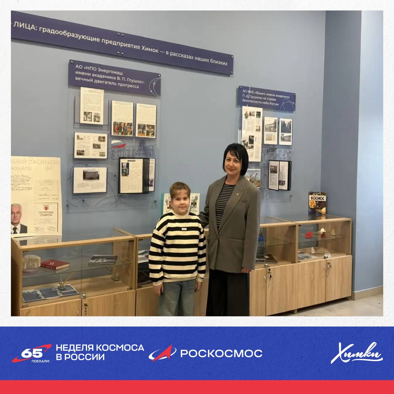 Среди героев экспозиции – сотрудники ведущих предприятий Химок: НПО имени С. А. Лавочкина, МКБ «Искра» и МКБ «Факел».