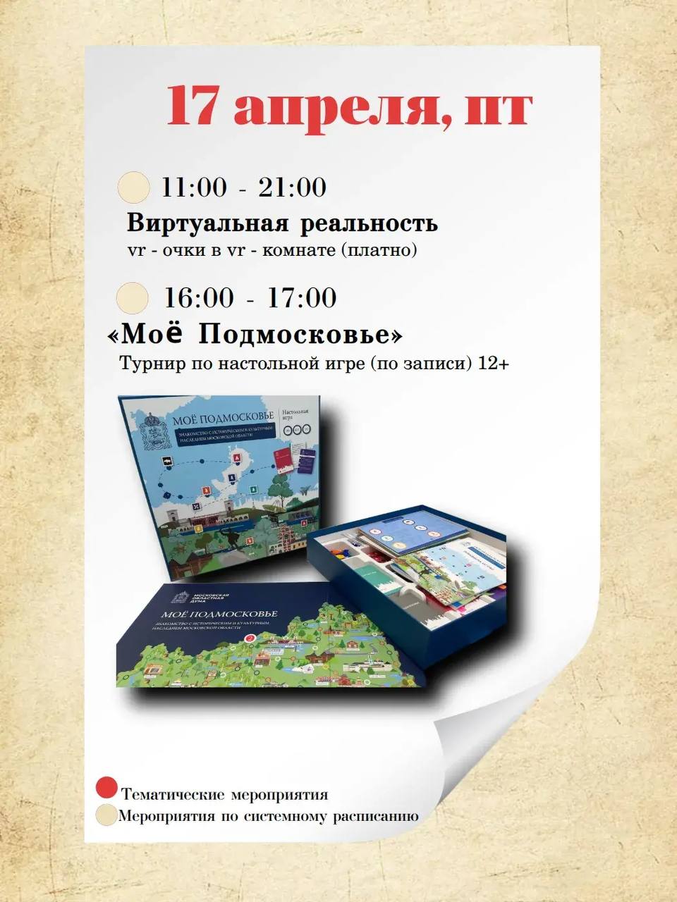 «Мое Подмосковье» - турнир по настольной игре (по записи) 12+.