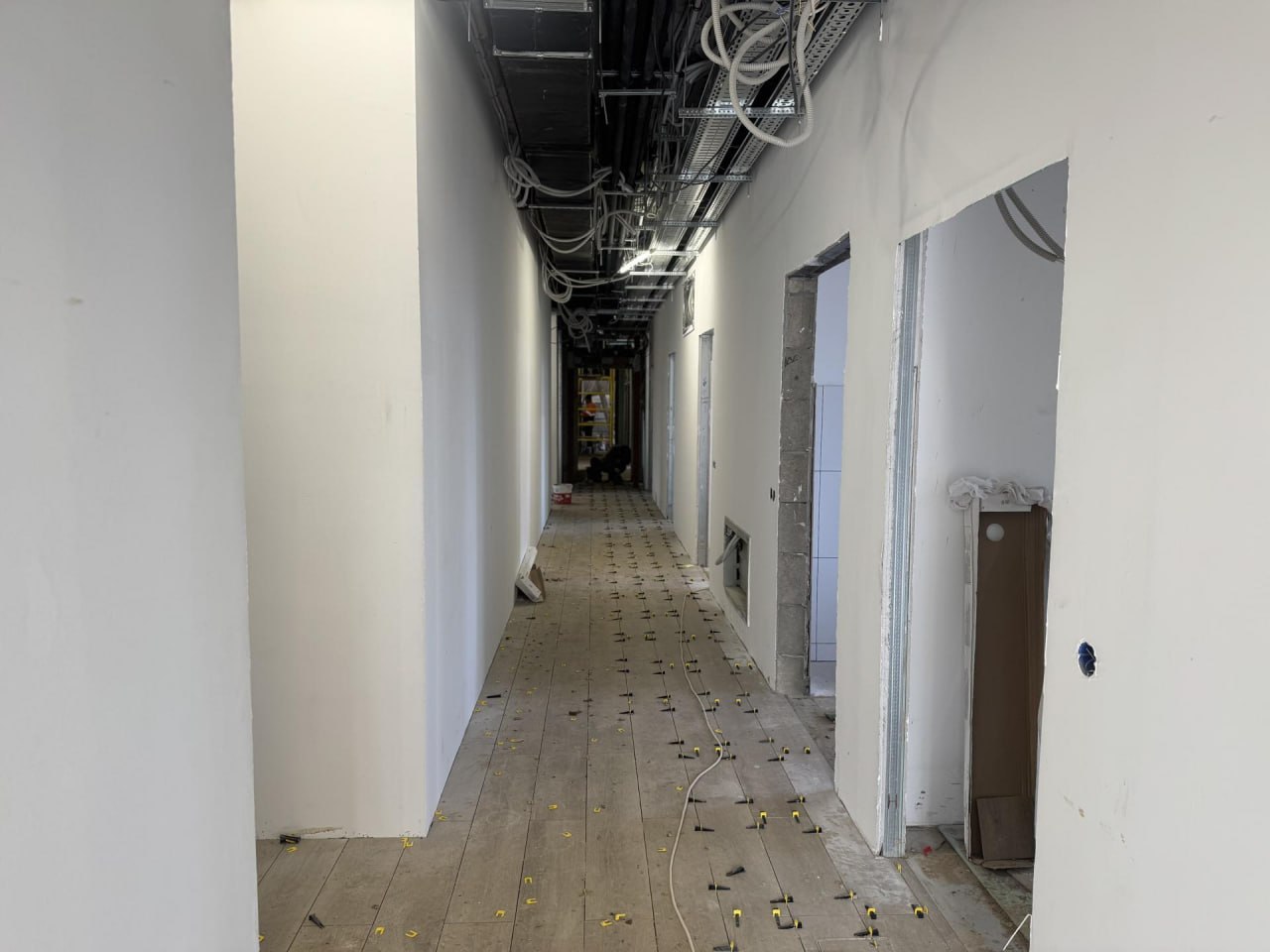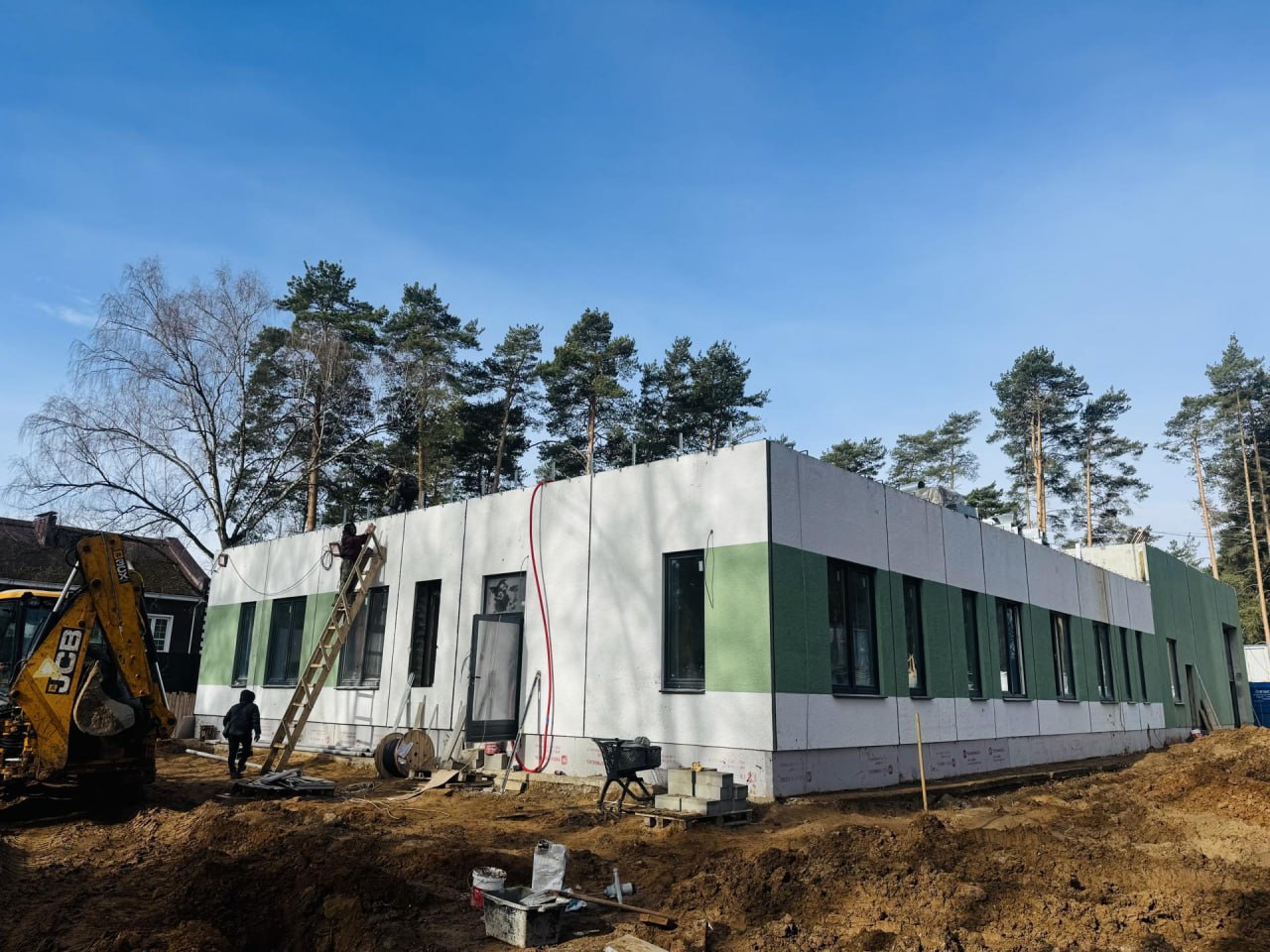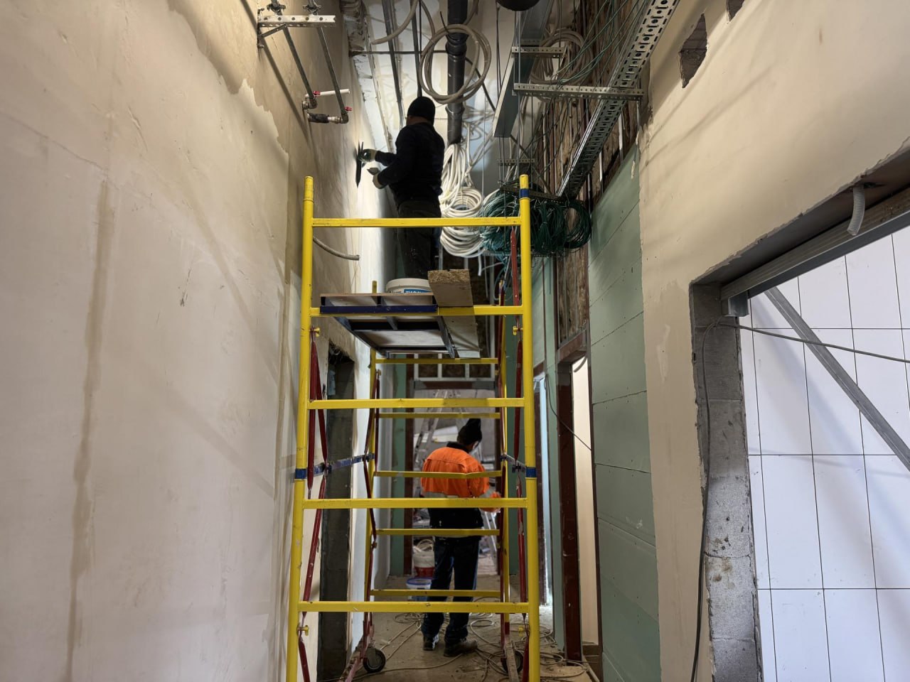 Ежедневно на объекте трудятся порядка 75 человек, задействованы две единицы техники. Специалисты завершили устройство всех внутренних инженерных коммуникаций и сейчас заняты монтажом дверей и финишной отделкой помещений.