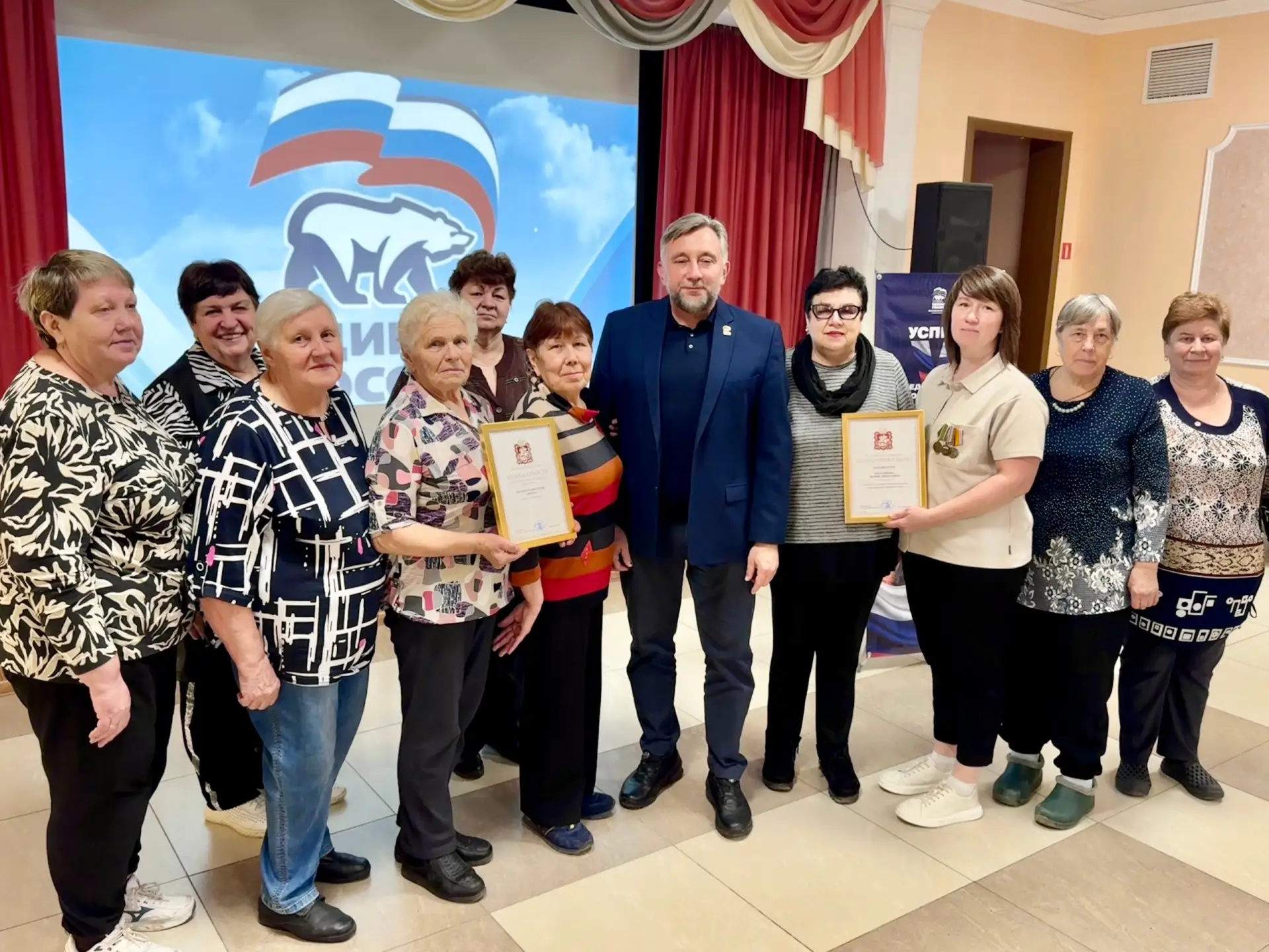 В завершение встречи депутат вручил от Мособлдумы благодарность волонтёрской группе «Оберег» и благодарственное письмо Любови Колесниковой за поддержку российской армии и жителей исторических территорий.