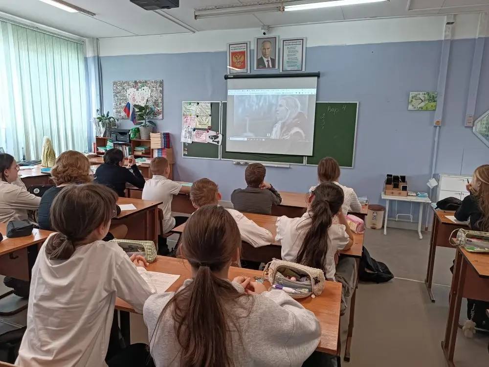 По традиции утро понедельника началось с поднятия флага - почетное право предоставлено ученице 6е класса юнармейцу отряда Варяг Лямцевой Любови