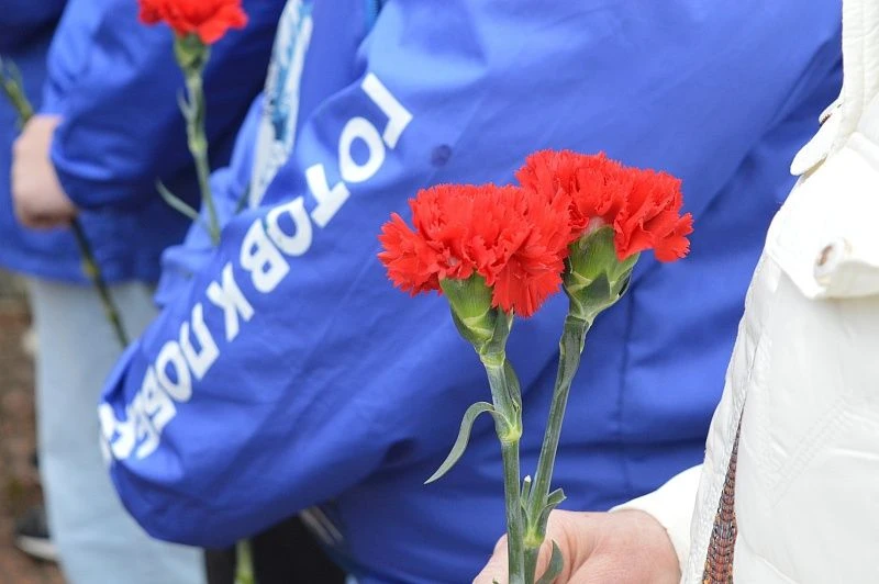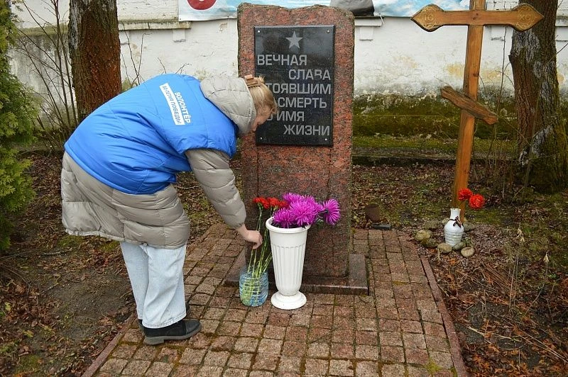 Волонтёры возложили цветы к подножию монумента и минутой молчания почтили память всех, кто был замучен в фашистских концлагерях.
