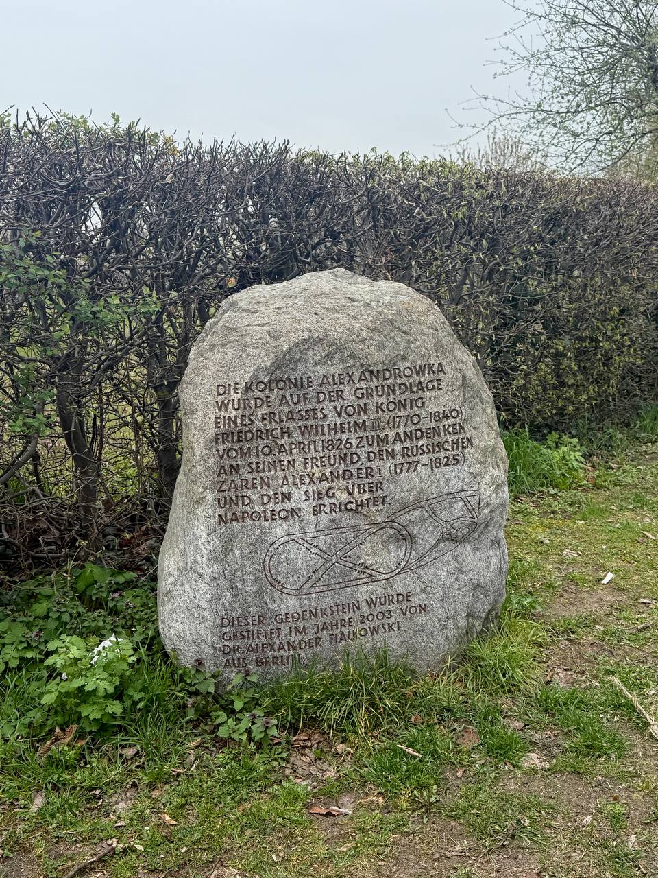 История колонии уходит корнями в эпоху Наполеоновских войн. Её первыми жителями стали русские певцы солдатского хора, составленного из военнопленных. В 1813 году они плечом к плечу с прусскими солдатами сражались против Наполеона. Изначально хор насчитывал 62 человека, но к 1825 году, когда умер Александр I, в живых оставалось лишь двенадцать – им и были отведены дома в Александровке. В 1827 году певцы въехали в полностью обустроенное жильё.