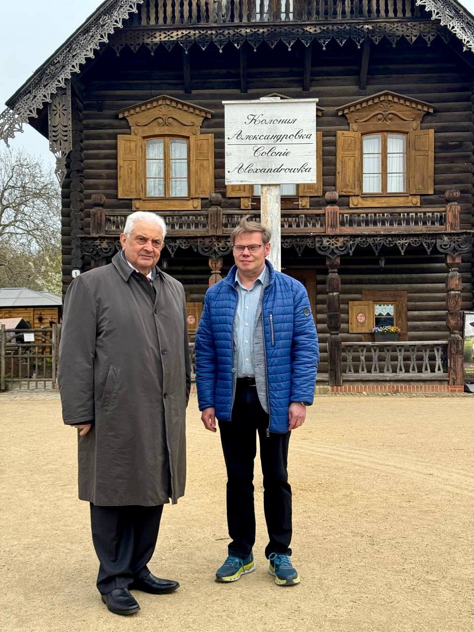 14 апреля 2026 г. Посол России в ФРГ С.Ю.Нечаев посетил деревню Александровка в Потсдаме в честь 200-летия со дня основания русской колонии. В ходе мероприятия историк Андрей Чернодаров провёл для гостей экскурсию по музейному комплексу и рассказал об истории поселения.