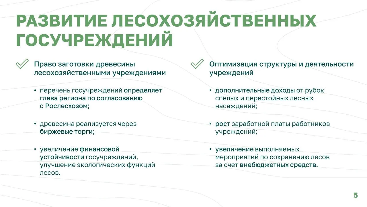 Рослесхозом разработан порядок, регулирующий вопросы формирования и изменения перечня госучреждений, требований к ним и порядка их проверки Рослесхозом, а также оснований исключения учреждений из перечня.