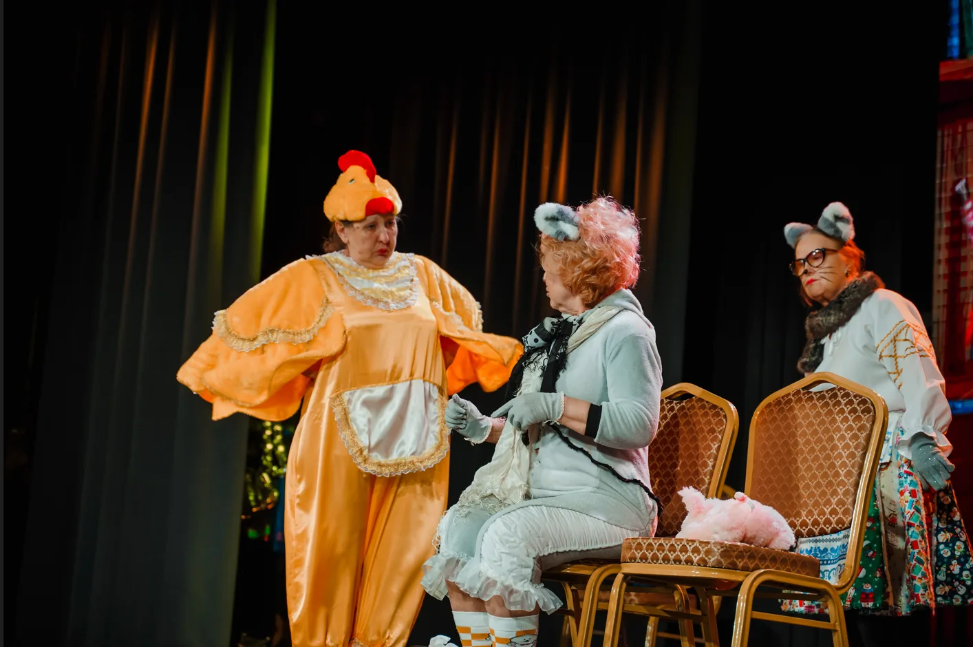 Коллективы тщательно готовились к показу: работали с текстом, прорабатывали персонажей, самостоятельно создавали костюмы и придумывали, как зацепить зрителя. Поэтому на сцене Дома культуры на пл. Пушкина были дрессированные тигры, пингвины и даже настоящая собачка!