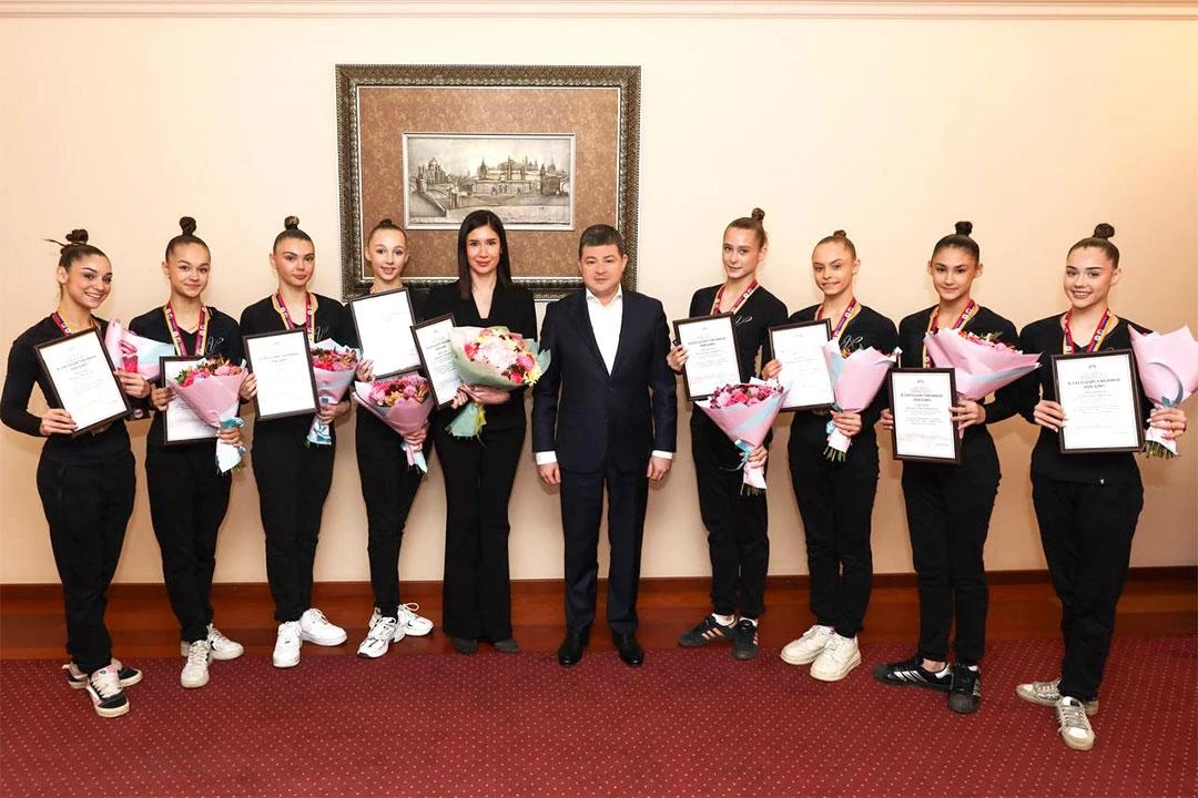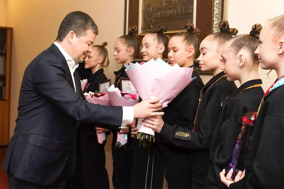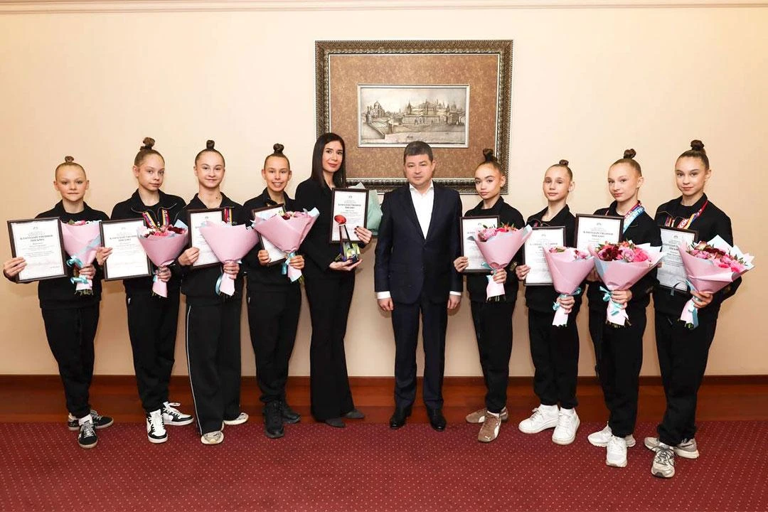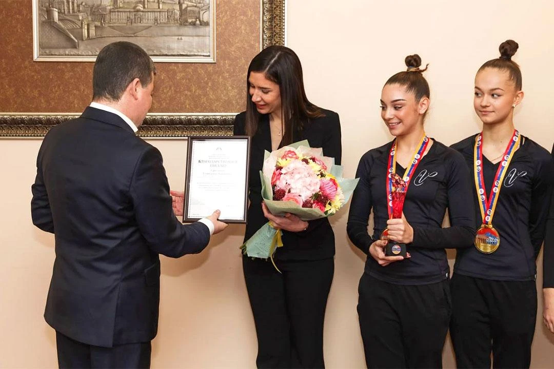 Глава Раменского округа Эдуард Малышев вручил гимнасткам Благодарственные письма и отметил: