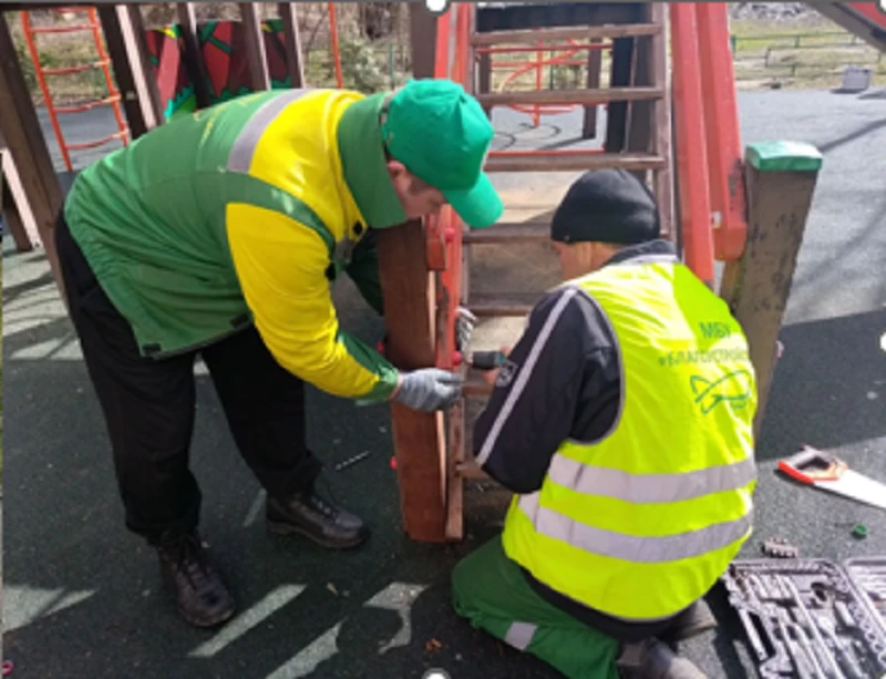 - ремонт и покраска 32 детских игровых площадок и 50 малых архитектурных форм (лавочки, урны);