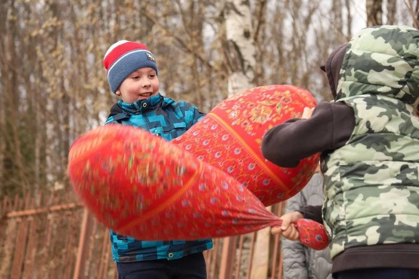 мастерили кокошники и расписывали домики делали аквагрим играли в городки, перетягивали канат, бились мешками