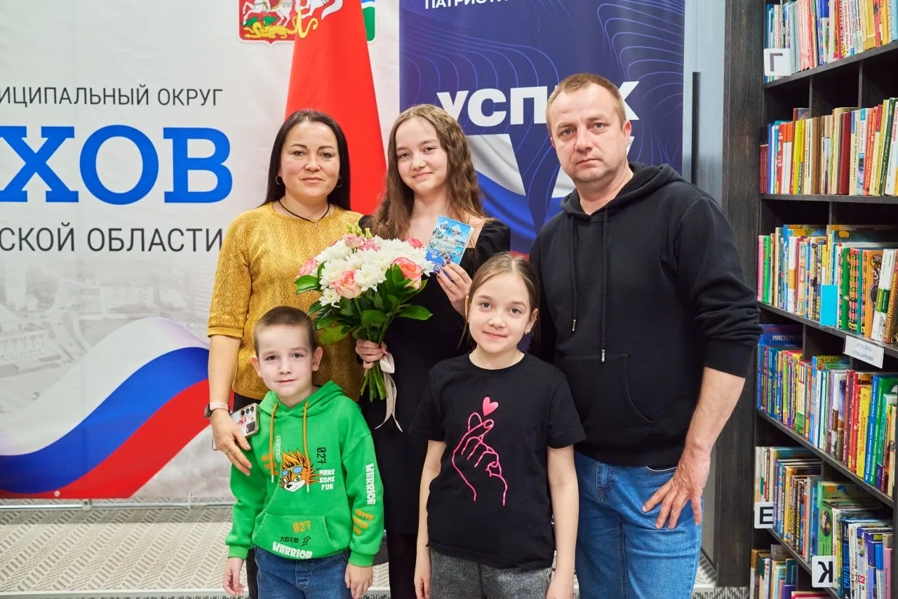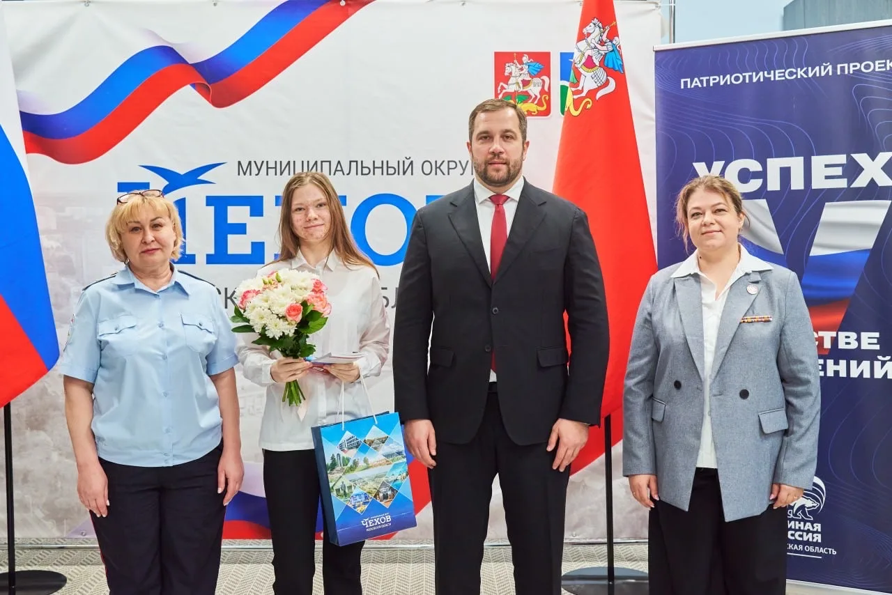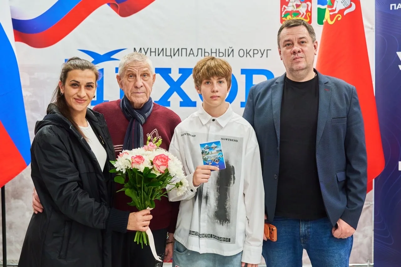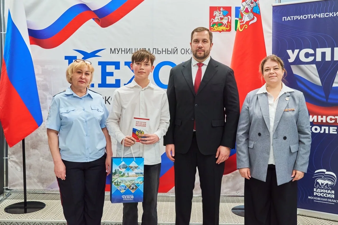 Вместе с Ветераном специальной военной операции Анной Поддубней в торжественной обстановке вручили паспорта двенадцати юным жителям Чехова