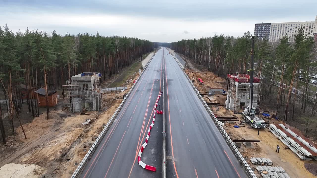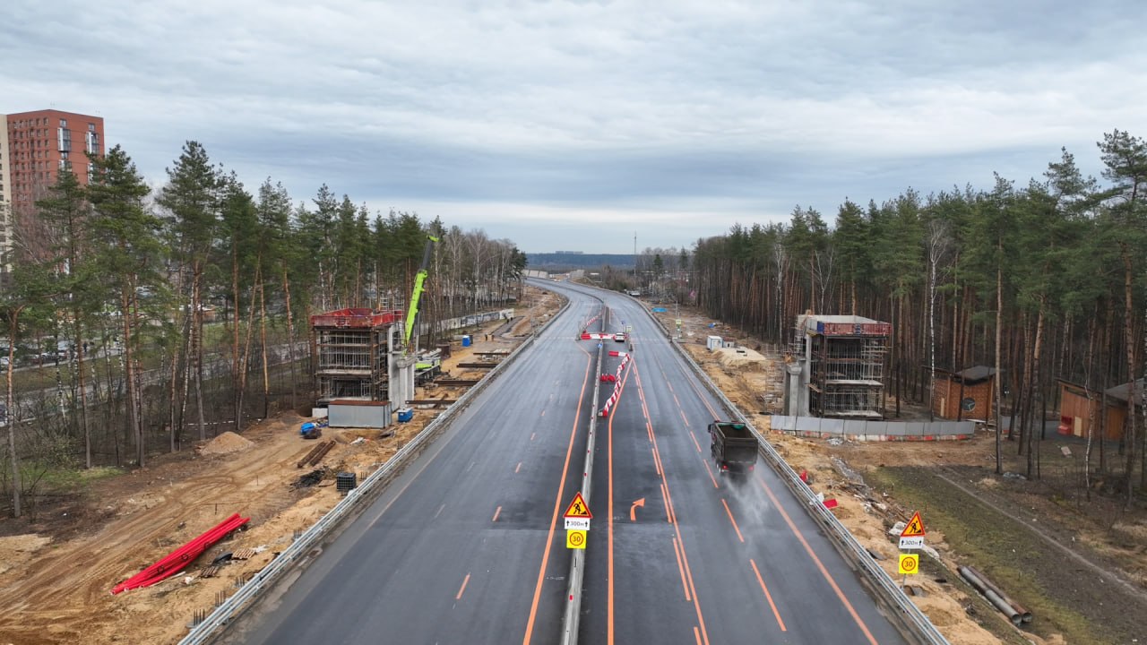 Параллельно идет установка шумозащитных экранов, опор освещения и разделительного ограждения.