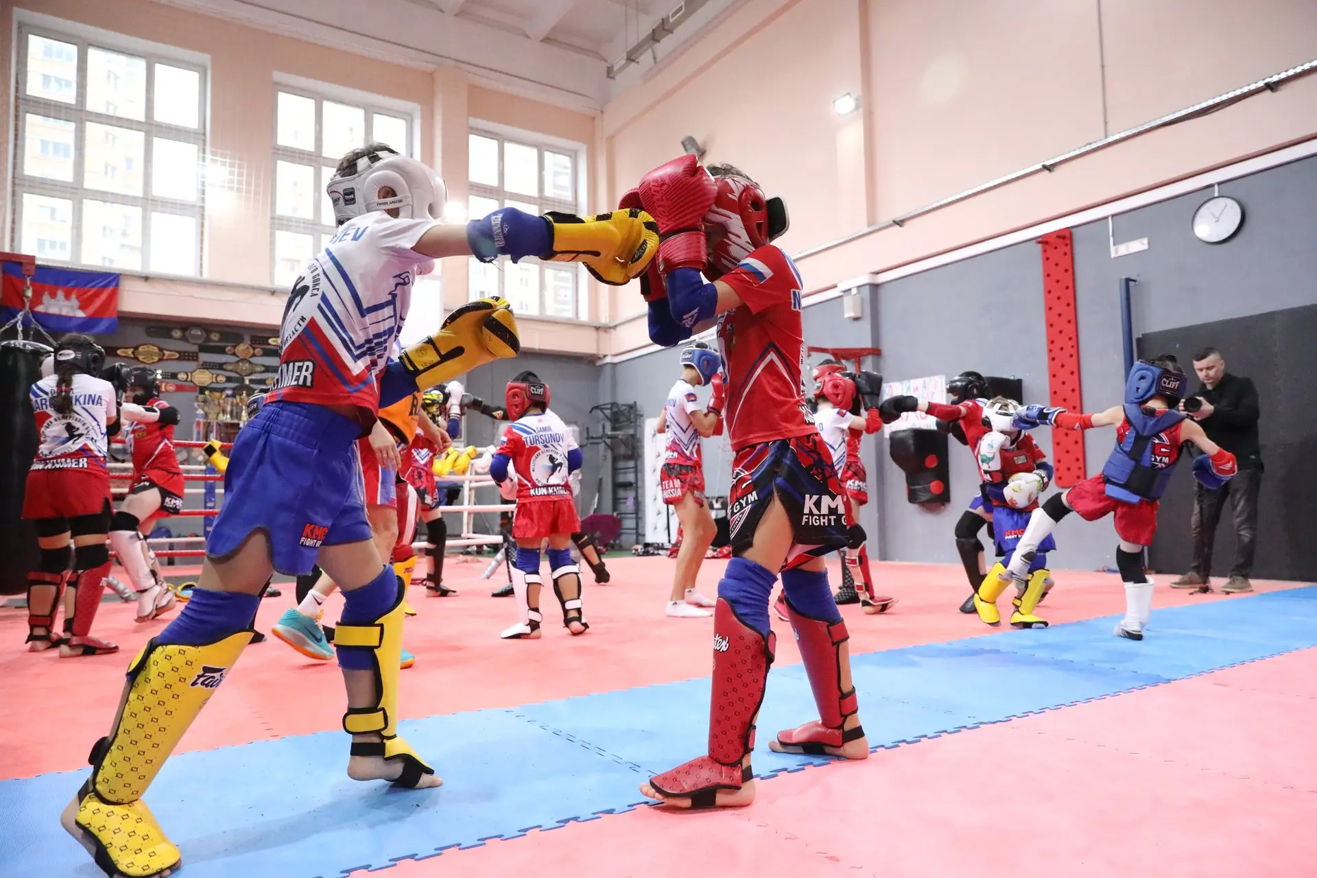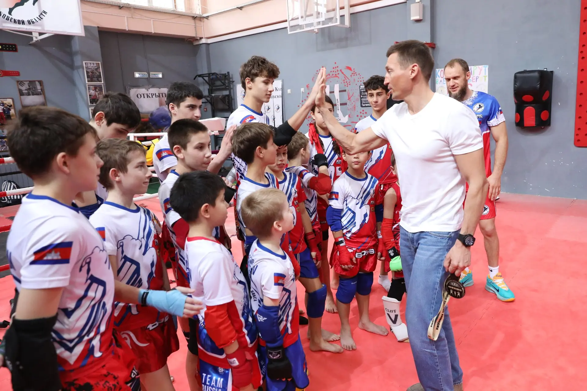 Первая точка маршрута - школа №17. На базе учреждения сегодня работают секции по муай-тай, кикбоксингу и кхмерскому боксу. Александр Геннадьевич заглянул на тренировку и, конечно же, дал подержать юным бойцам свою золотую медаль Олимпиады в Сочи.