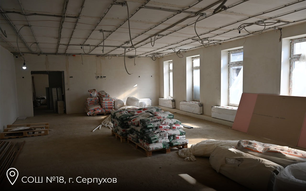 К сентябрю также в планах и обновление школы в с. Липицы. Кроме этого, на 2026-й намечена сдача СОШ №10 в Серпухове, здесь полностью заменят кровлю и инженерные системы, обновят фасад, сделают внутреннюю отделку.