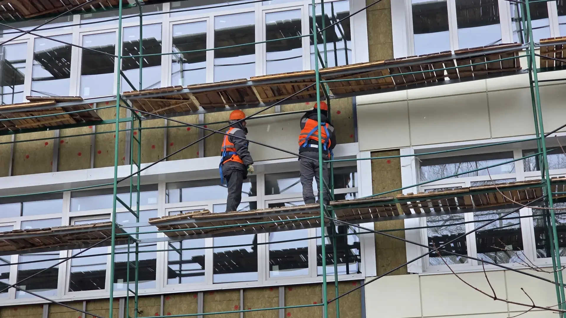 На 60% выполнены работы по ремонту фасада гимназии №5 «Интеллект» в Люберцах