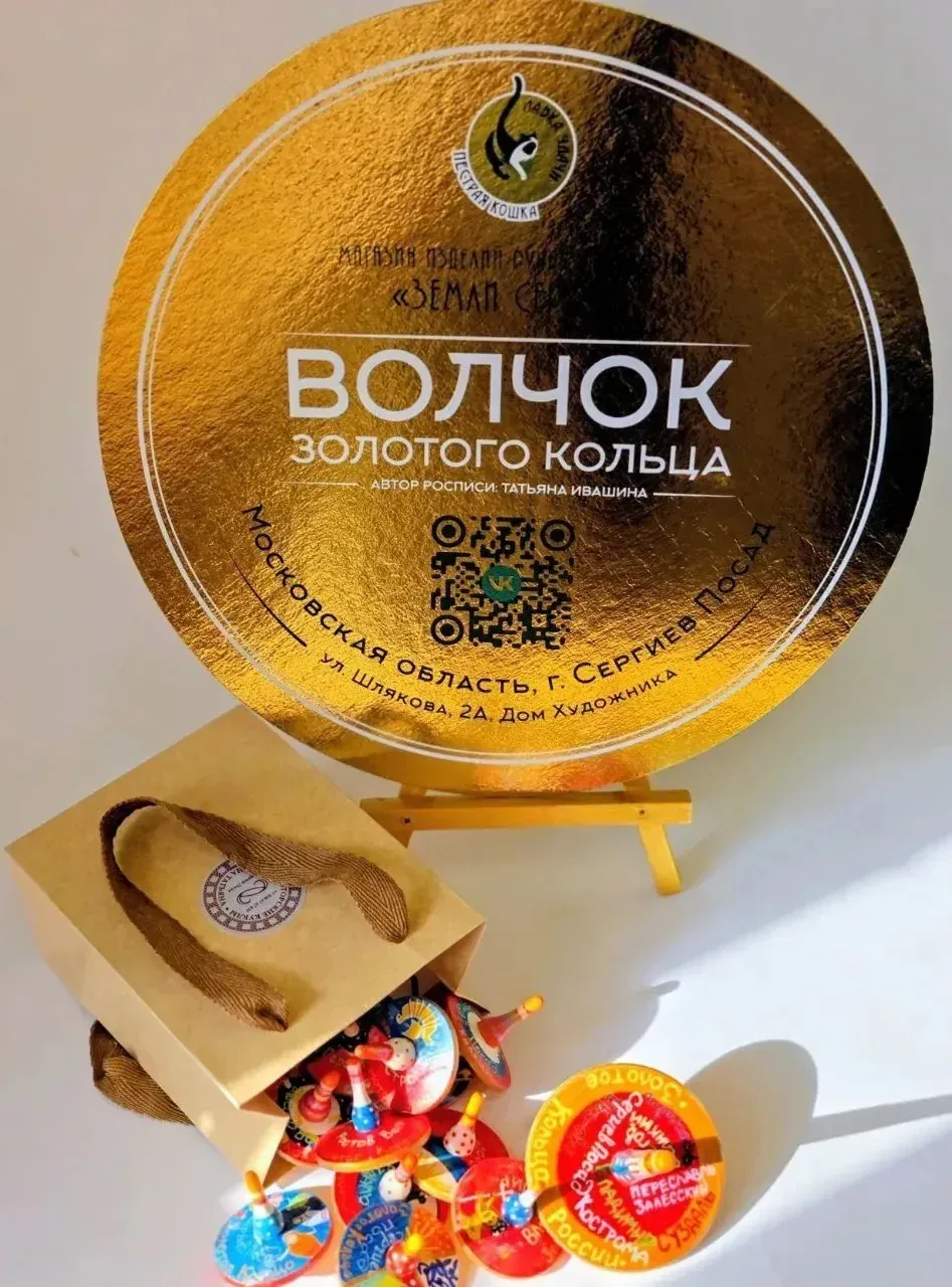 I МЕСТО — Лавка удачи «Пестрая кошка» в номинации «Декоративно-прикладной сувенир Золотого кольца» (до 1000 руб.). Волчок Золотого кольца — задор и удача в каждом обороте!