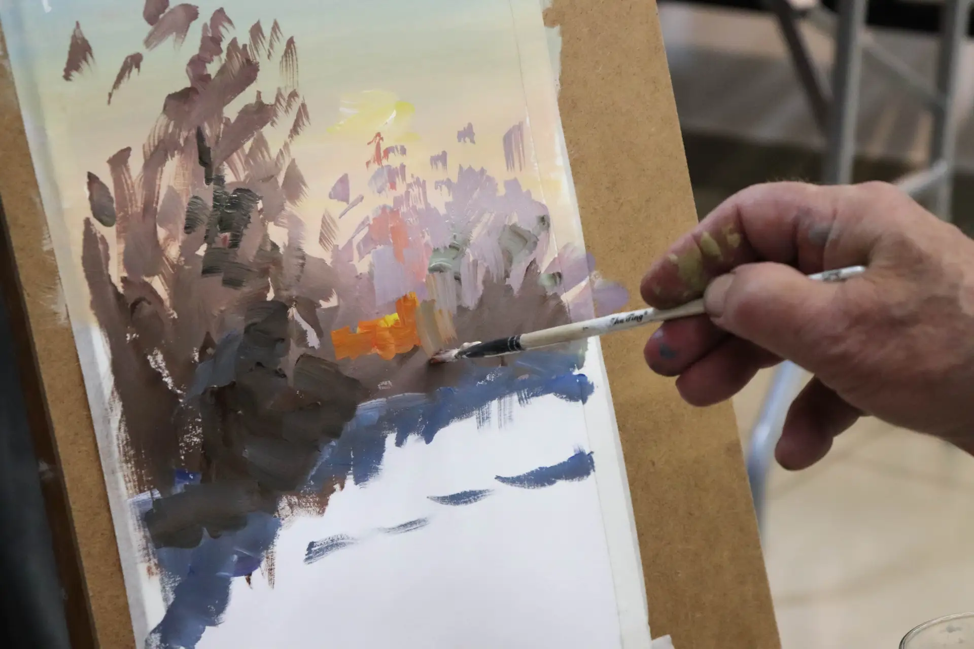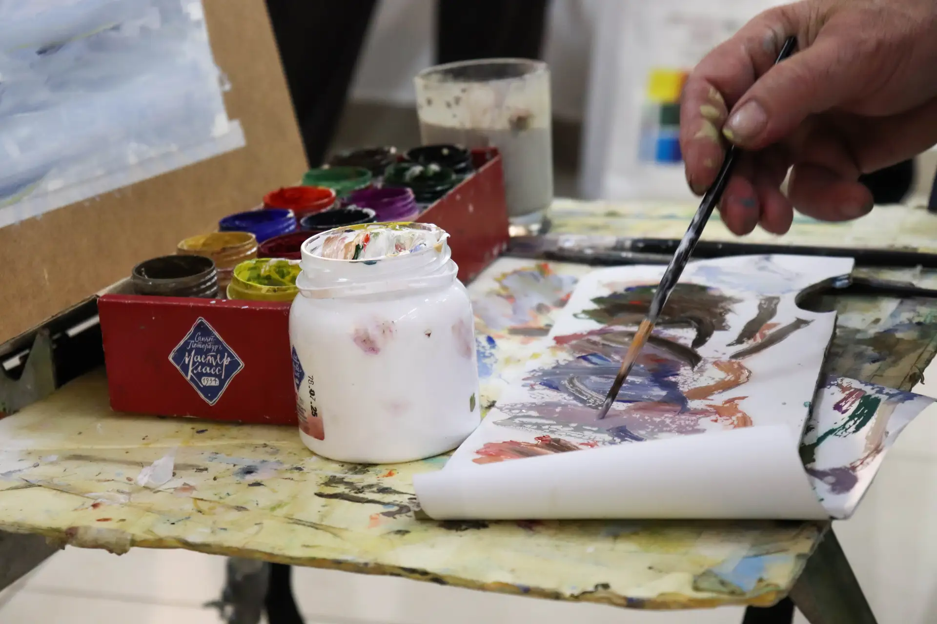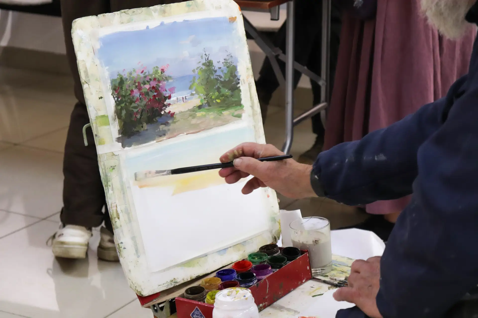 Главным событием вечера стал мастер-класс по технике масляной живописи от Валентина Дмитриева. Он подчеркнул важность работы со светом и композицией, а также показал разные техники нанесения красок на холст.