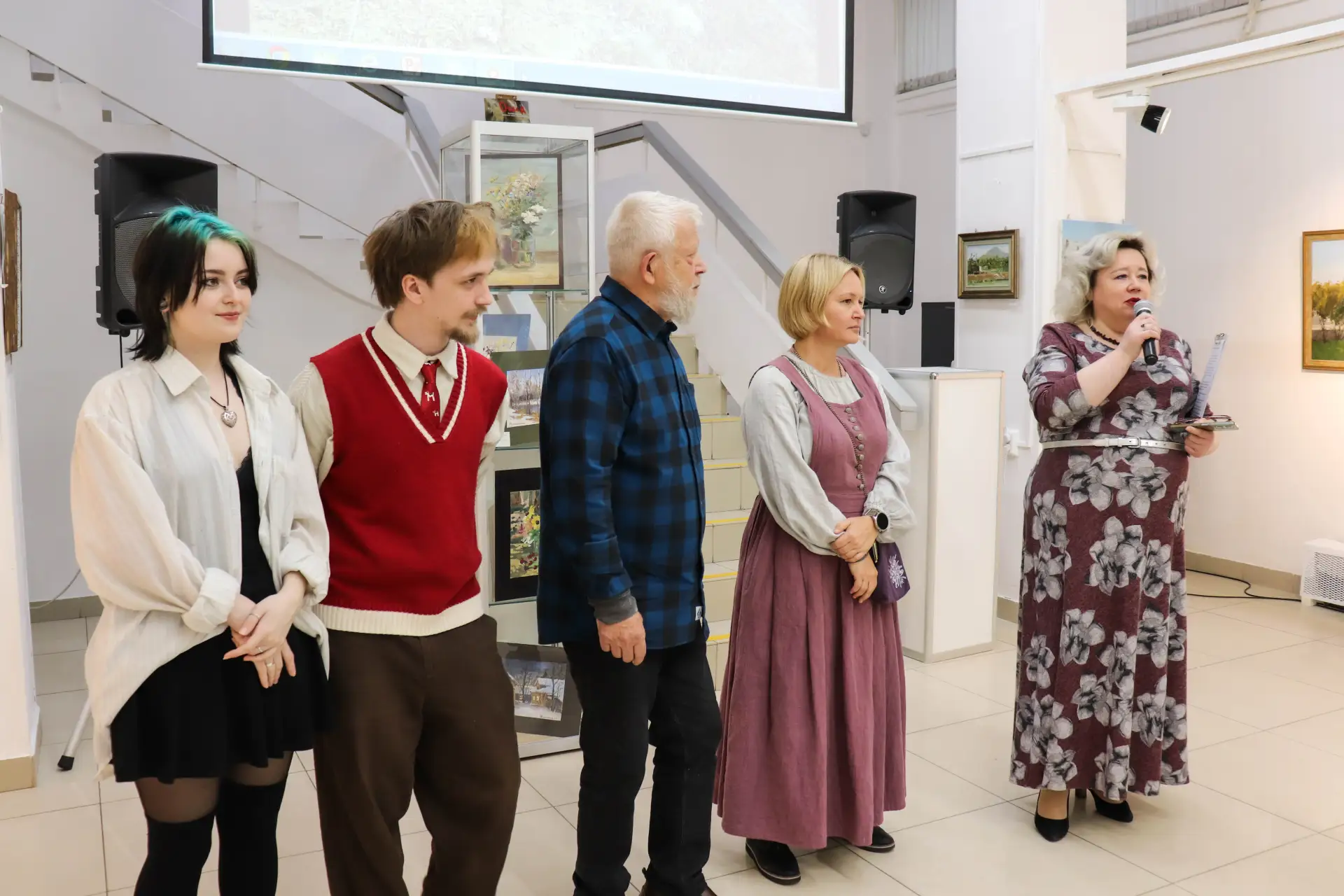 Заслуженный художник РФ Валентин Дмитриев, а также его ученики – дочь Галина, внук Елисей и его супруга Анна Воронецкие – представили в выставочном зале более 70 работ и поведали гостям об истории их создания.