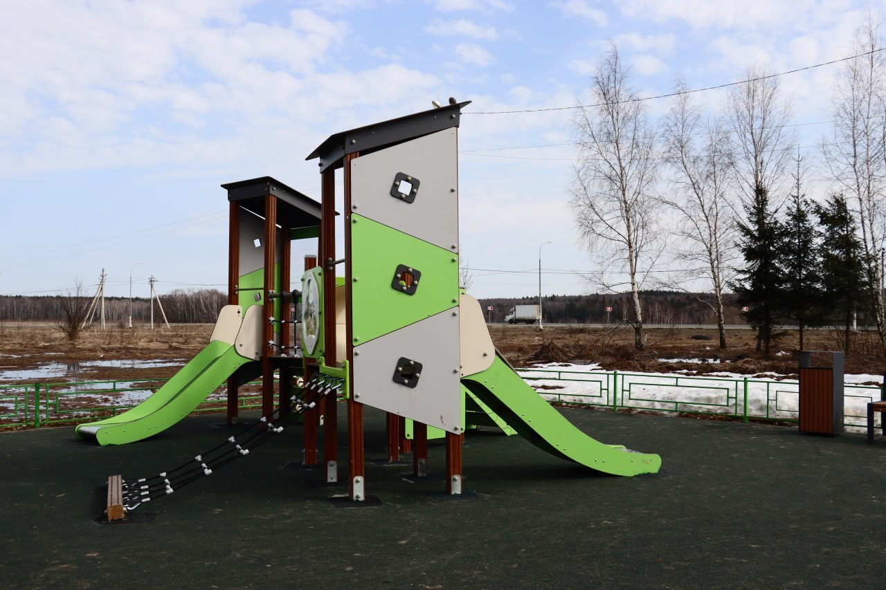 Новая площадка уже стала востребованным местом для отдыха. Здесь обустроено безопасное прорезиненное покрытие, установлен современный игровой комплекс с качелями, балансиром и спортивным оборудованием. Территория освещена, оборудована лавочками и урнами — созданы комфортные условия для детей и взрослых.