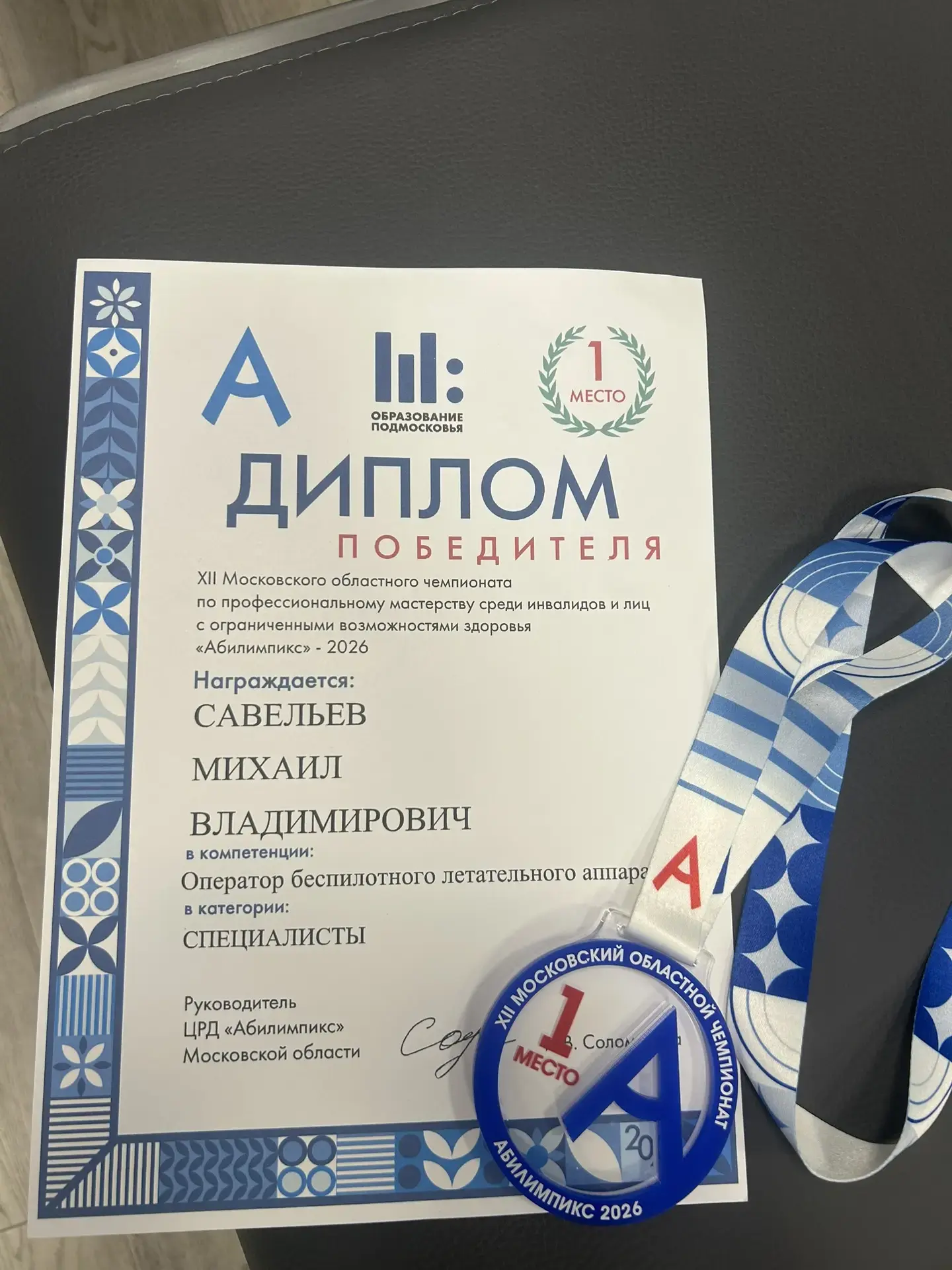 Михаил Владимирович Савельев, ветеран СВО, инструктор по беспилотным летательным аппаратам и руководитель кружка БПЛА Куровской школы №1, стал победителем Московского регионального чемпионата по профессиональному мастерству среди инвалидов и людей с ограниченными возможностями здоровья «Абилимпикс»!