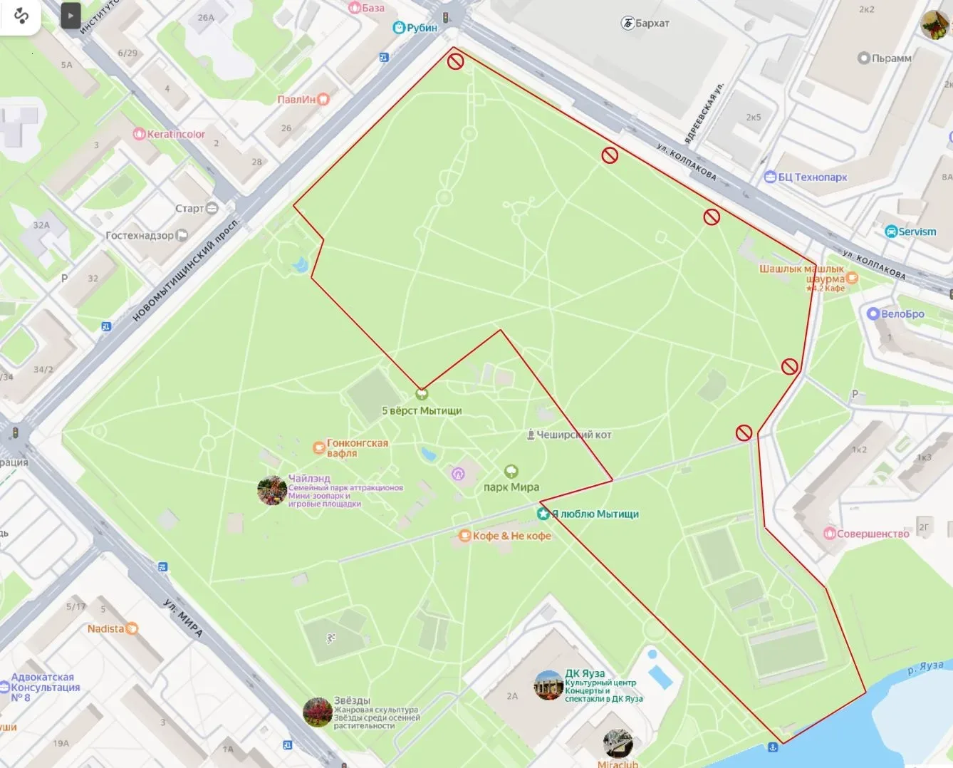 На территории парка размещается необходимая техника для строителей, подсобные и бытовые постройки. В конце апреля – начале мая будут закрыты входы в парк со стороны магазина «Рубин», улиц Колпакова и Шараповской.