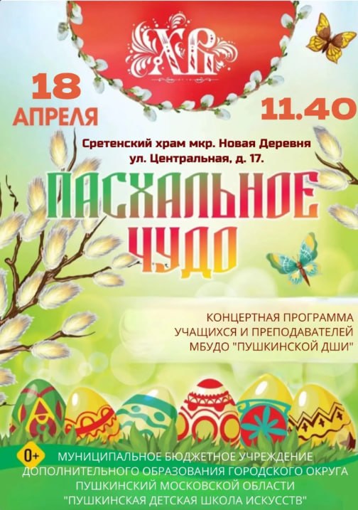 Приглашаем на концерт «Пасхальное чудо», который для вас подготовили учащихся и преподаватели Пушкинской детской школы искусств.