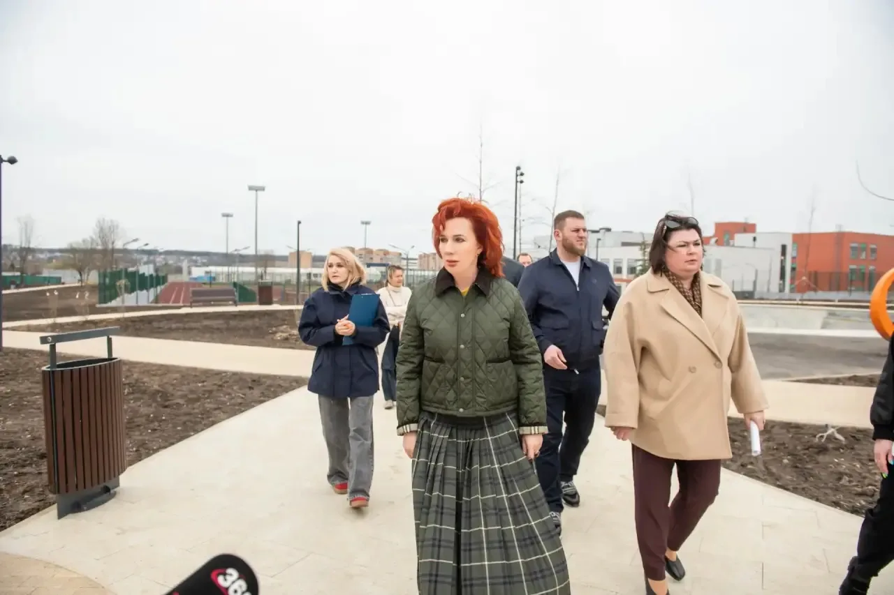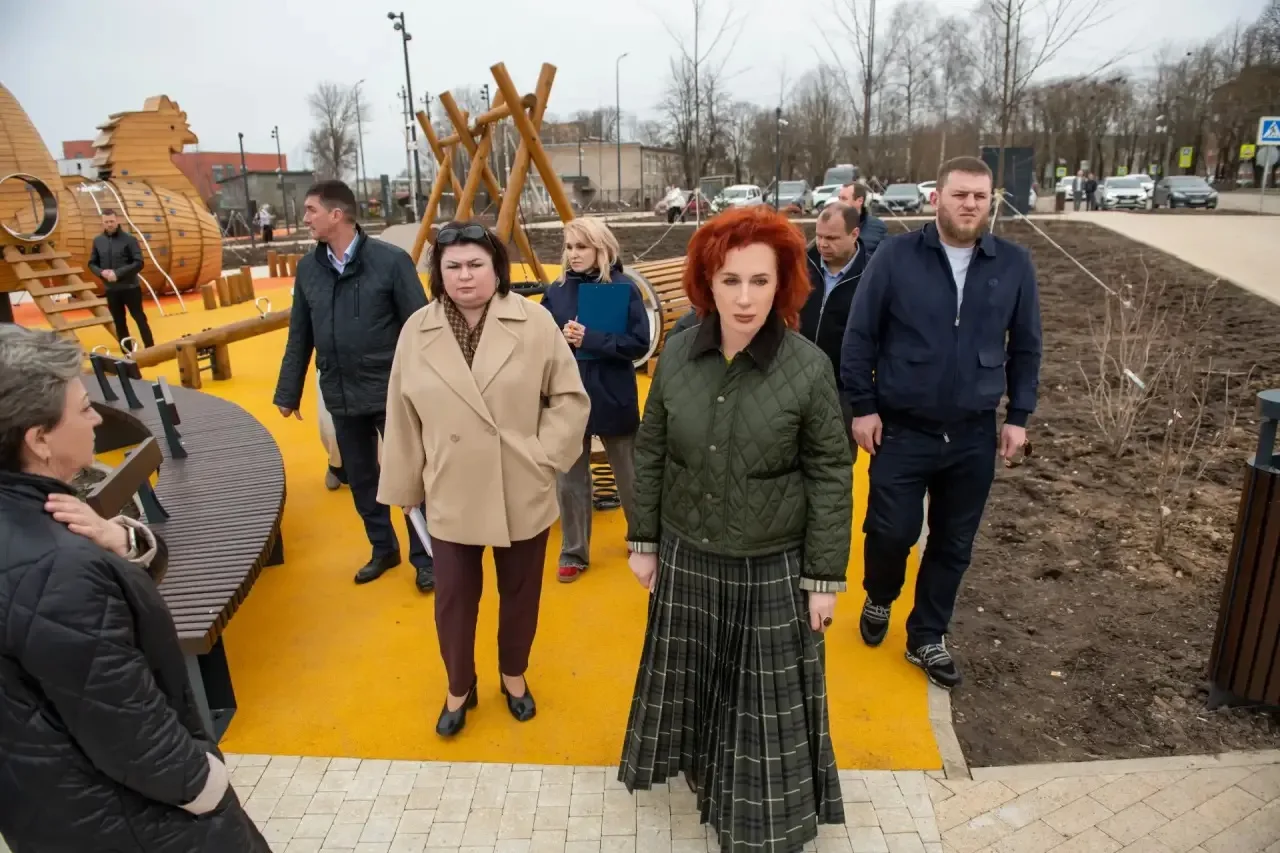 В ходе осмотра оценила текущее состояние территории после зимнего периода. Выявлены отдельные замечания по элементам благоустройства, состоянию покрытий и малых архитектурных форм.