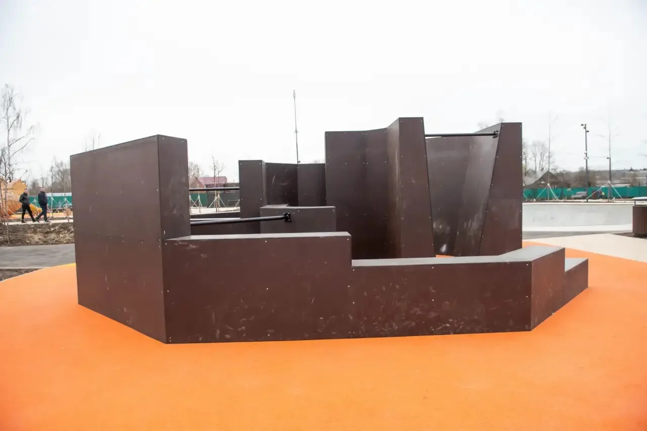 На площади 1,2 гектара сформировано многофункциональное пространство: обустроены пешеходные маршруты; создана детская игровая зона для разных возрастов; оборудована зона отдыха с качелями; установлен фонтан; предусмотрены площадки для активного досуга, паркур и скейт-зона с бетонным боулом; организованы парковочные места; выполнено озеленение, включая тематическую зону «Деревенский сад», а также выполнено современное освещение.